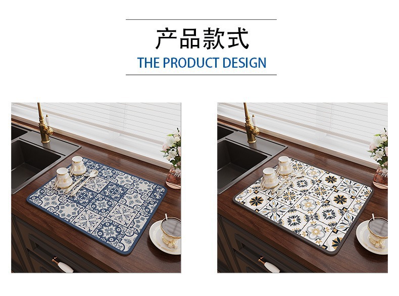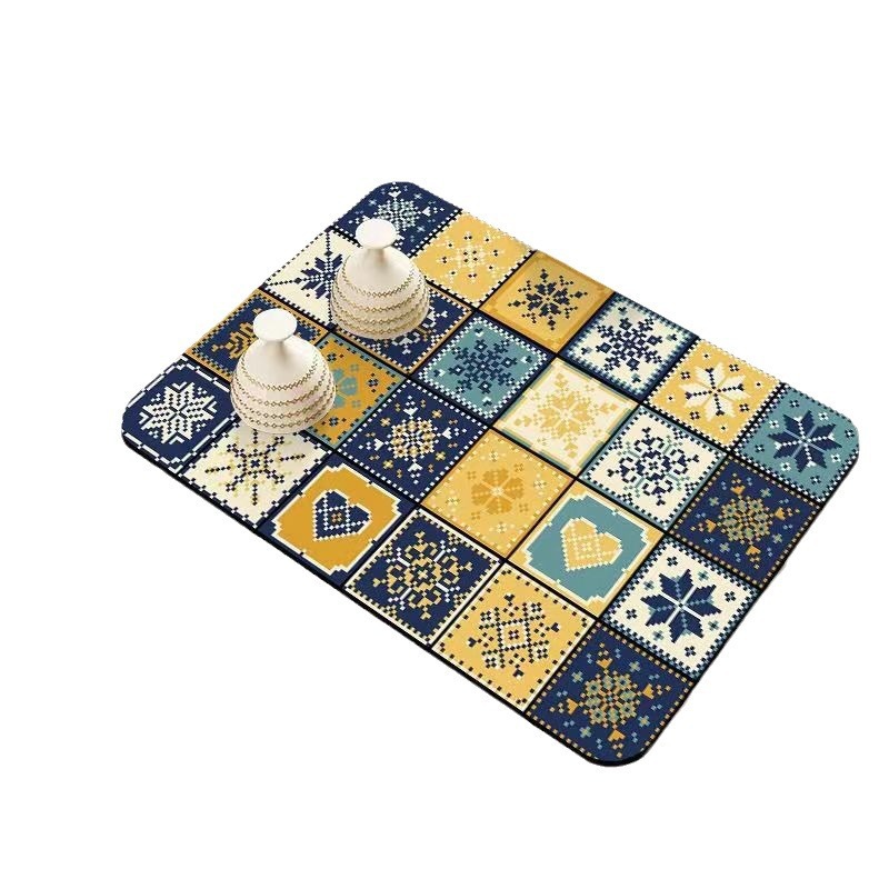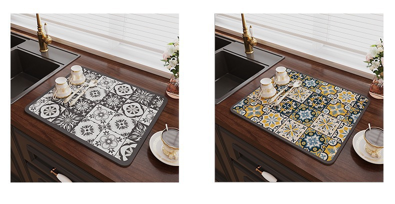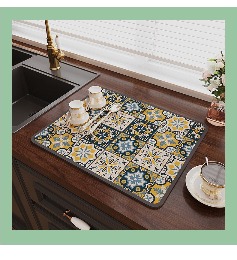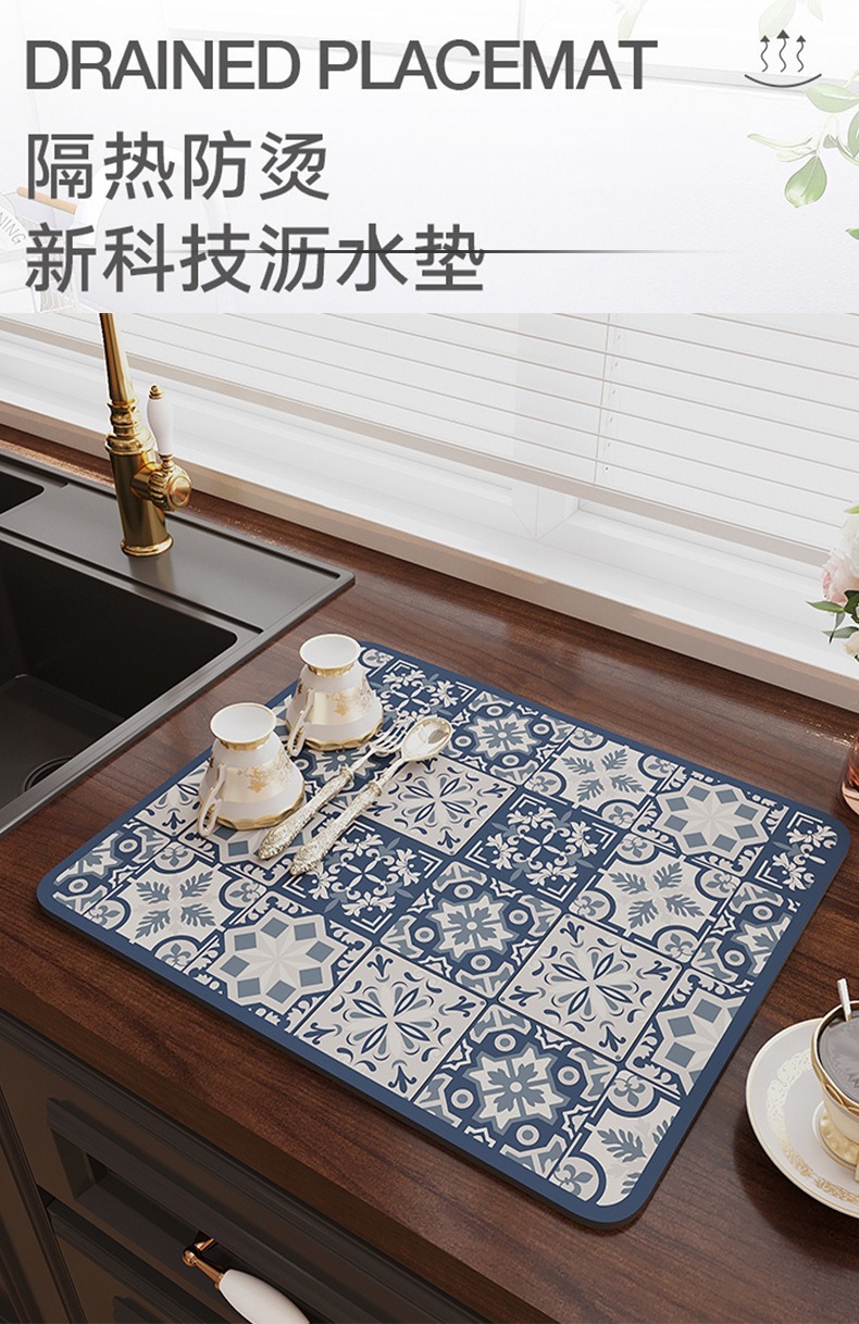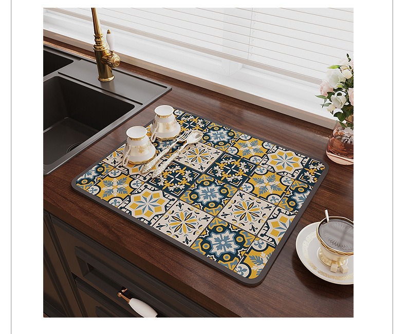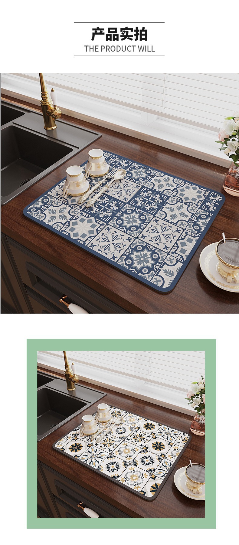 목가적 인 주방 배수 매트 테이블 탑 흡수성 빠른 건조 Diatom Mud 티 컵 매트 보울 및 젓가락 물 제어 세척 가능한 데스크탑 단열 매트