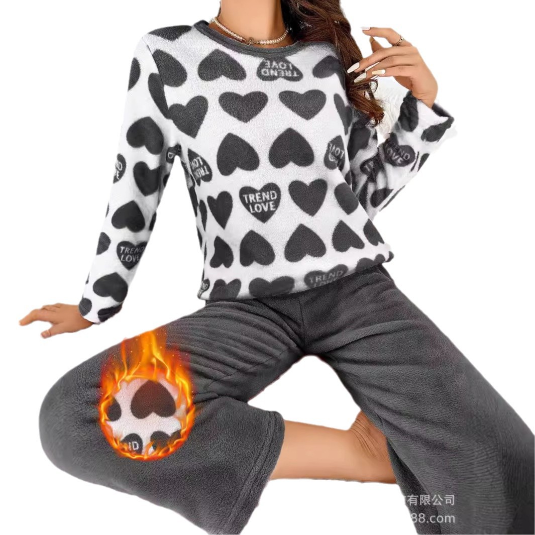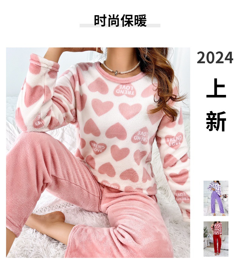 [멀티 컬러] 크로스보더 2024 가을 겨울 플란넬 잠옷 따뜻하고 부드러운 긴팔 바지 여성 잠옷 세트