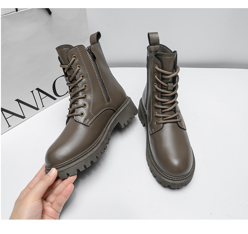 Huili 공식 정품 Martin Boots 여성 2024 년 새로운 여성 봄과 가을 두꺼운 밑창 영국 스타일 블랙 워크 부츠
