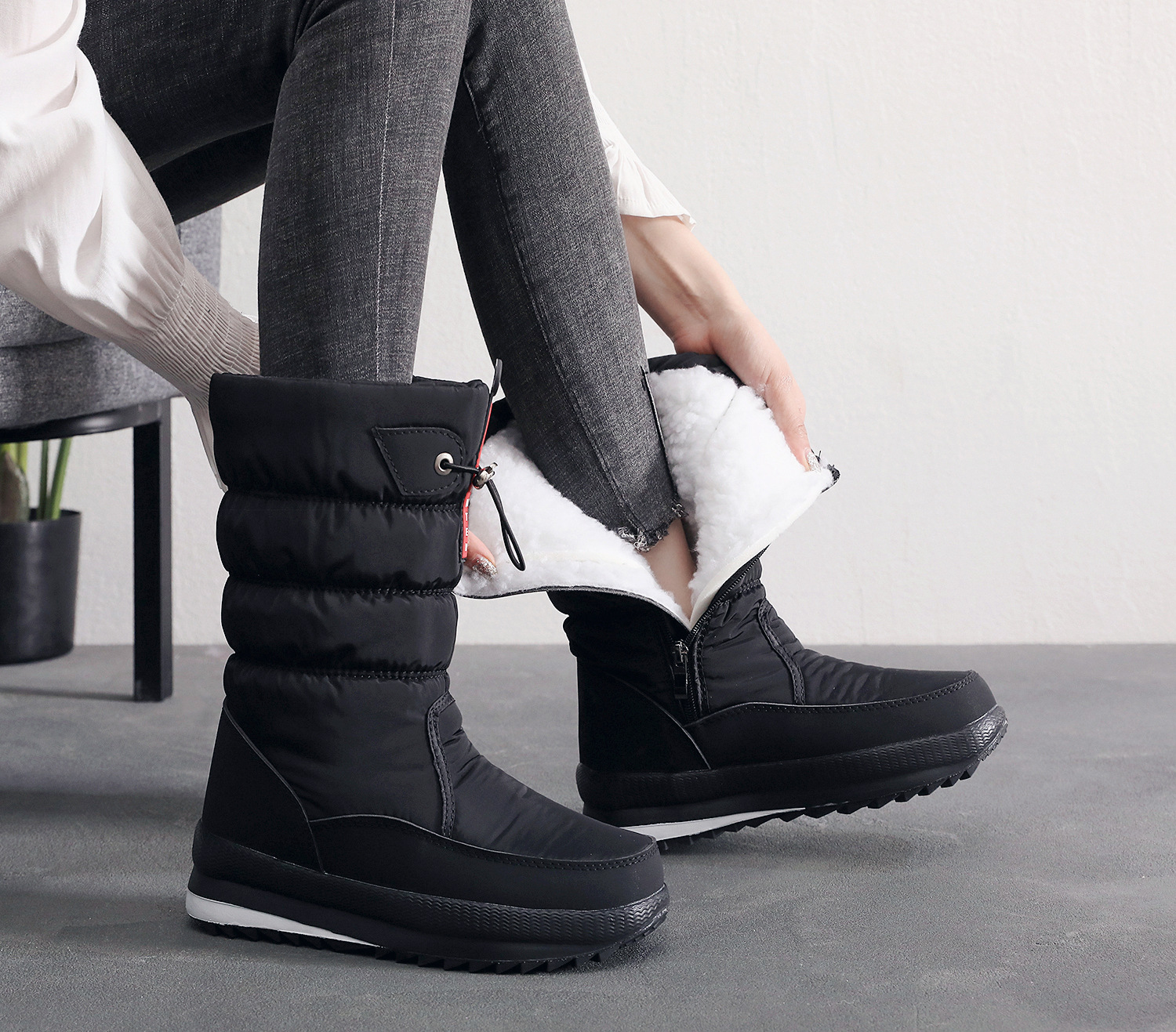 새로운 겨울 면화 국경 여성의 편안하고 따뜻한 중반 송아지 면화 부츠 플러스 벨벳 스노우 부츠 미끄럼 방지 방수 스노우 부츠