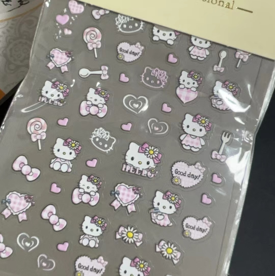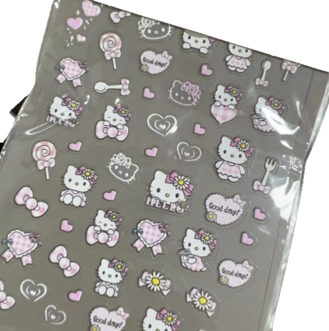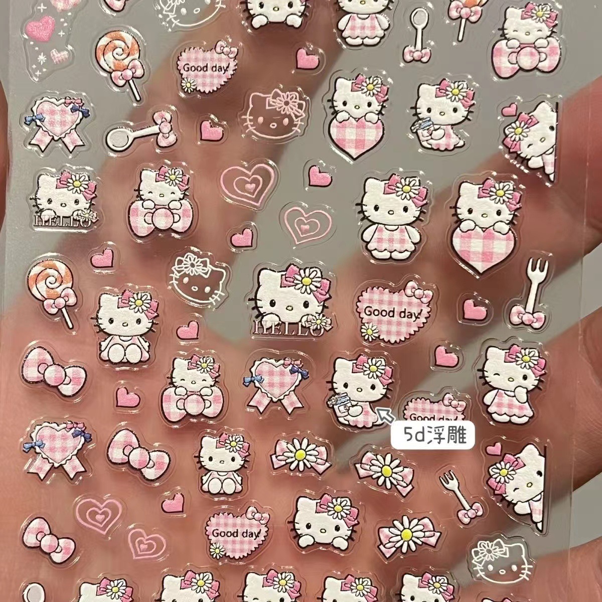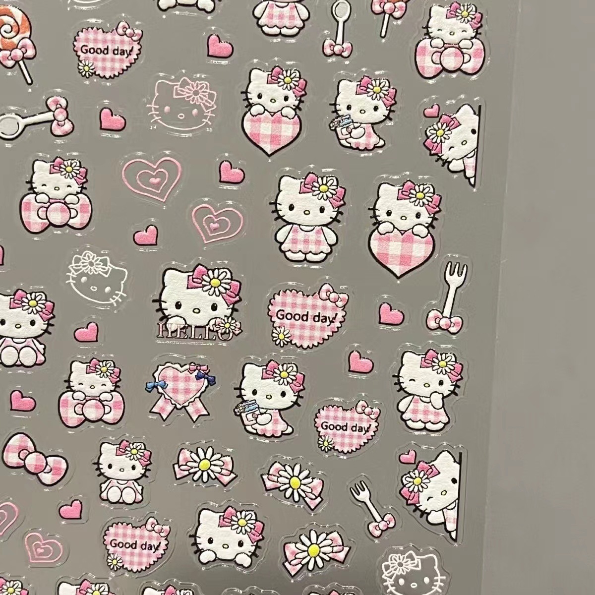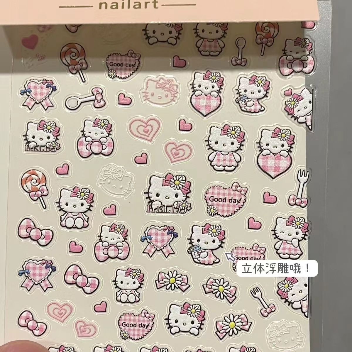 핑크 치마 헬로 키티 네일 아트 스티커 소녀의 심장 5d 양각 스테레오 헬로 키티 워터 컵 카메라 DIY 스티커