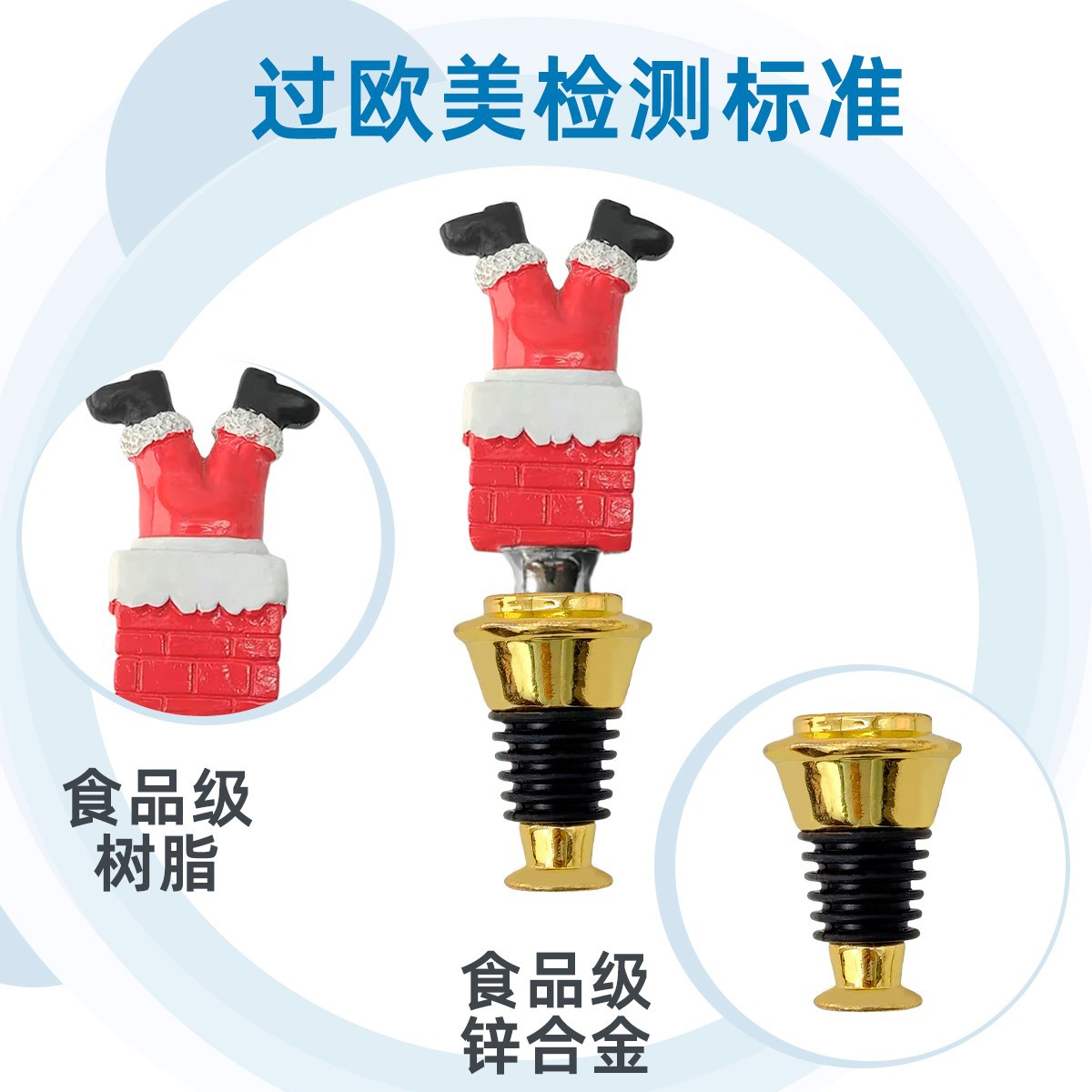 두 개의 와이어 아연 합금 와인 스토퍼가 있는 산타클로스