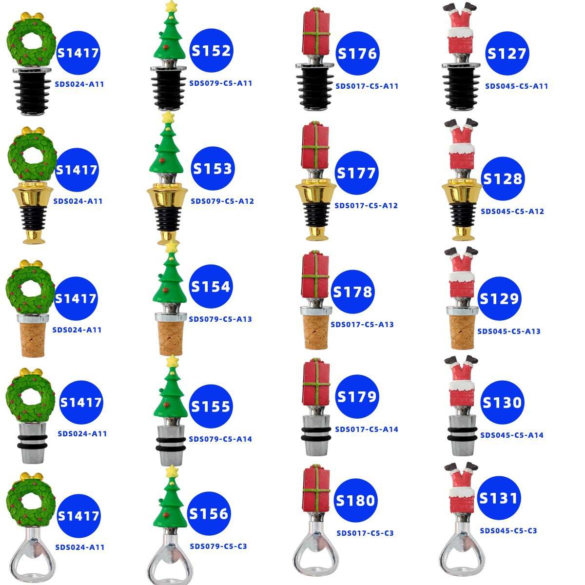 공장 도매 크리스마스 트리 산타 클로스 코르크 병 오프너 재사용 가능한 아연 합금 크리스마스 와인 마개
