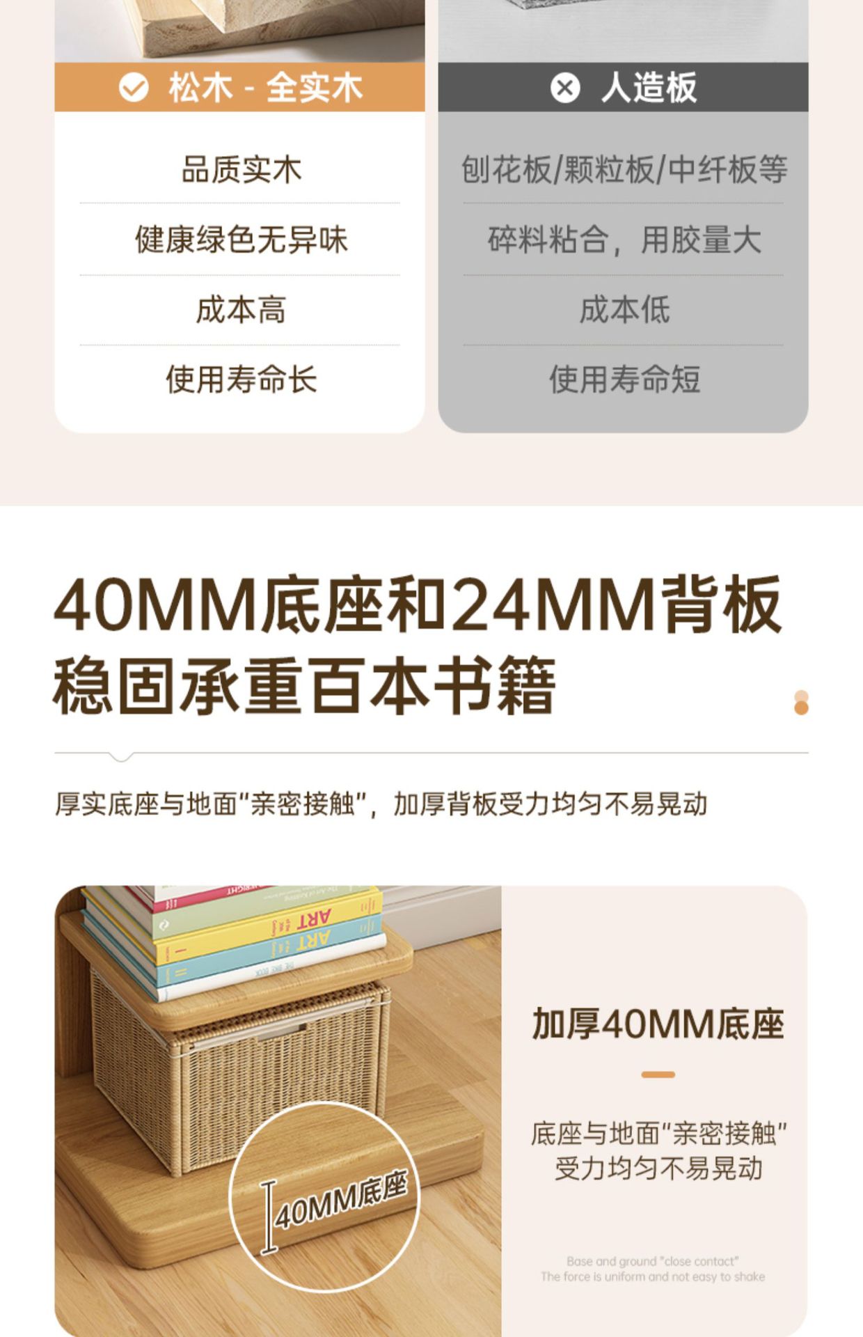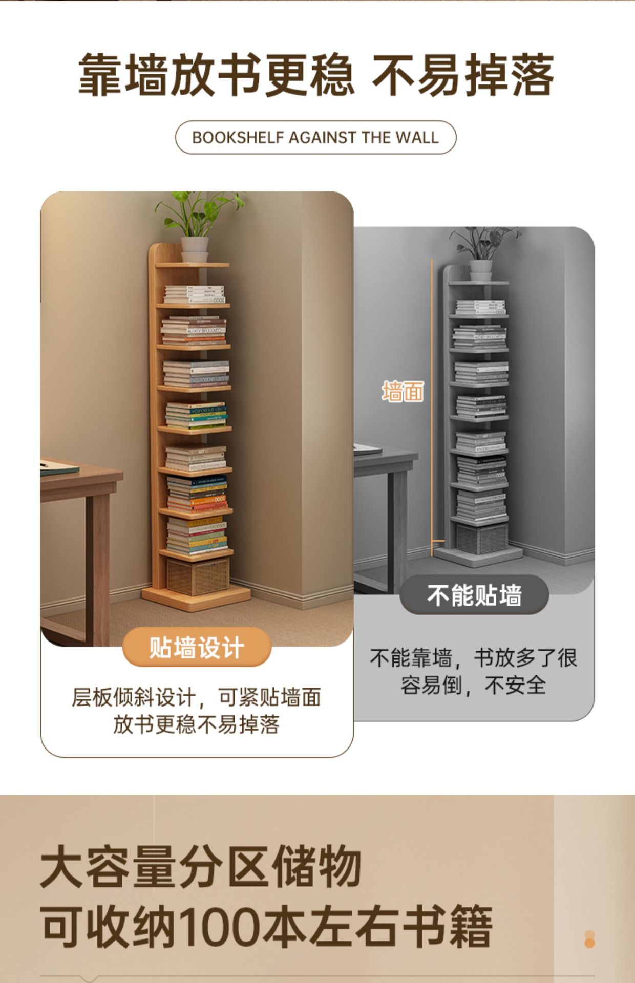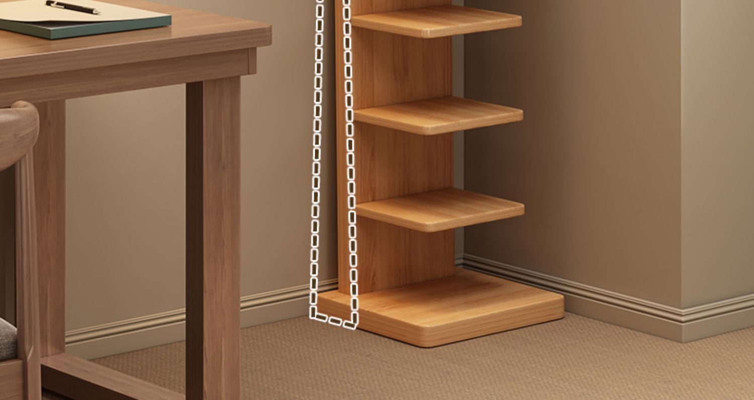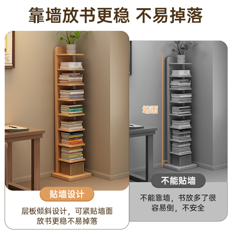 [두꺼운 베이스 플레이트가 더욱 안정적입니다.] 9단 원목 보이지 않는 책장 - 체리우드 색상 (넘어짐 방지 장치 포함)