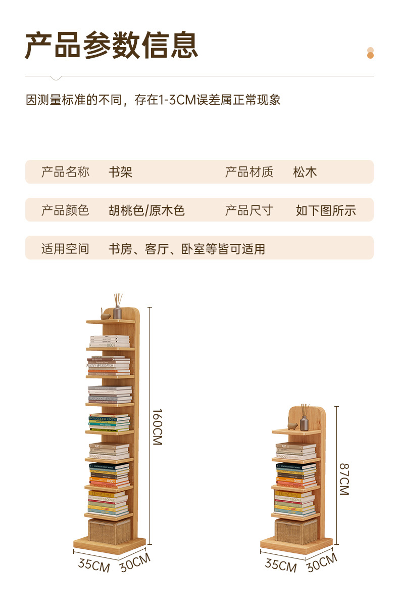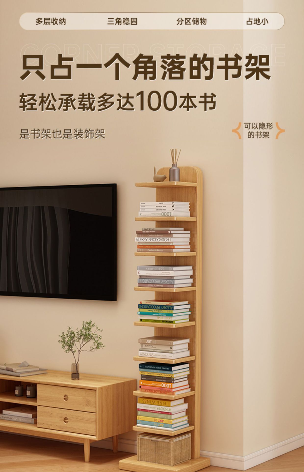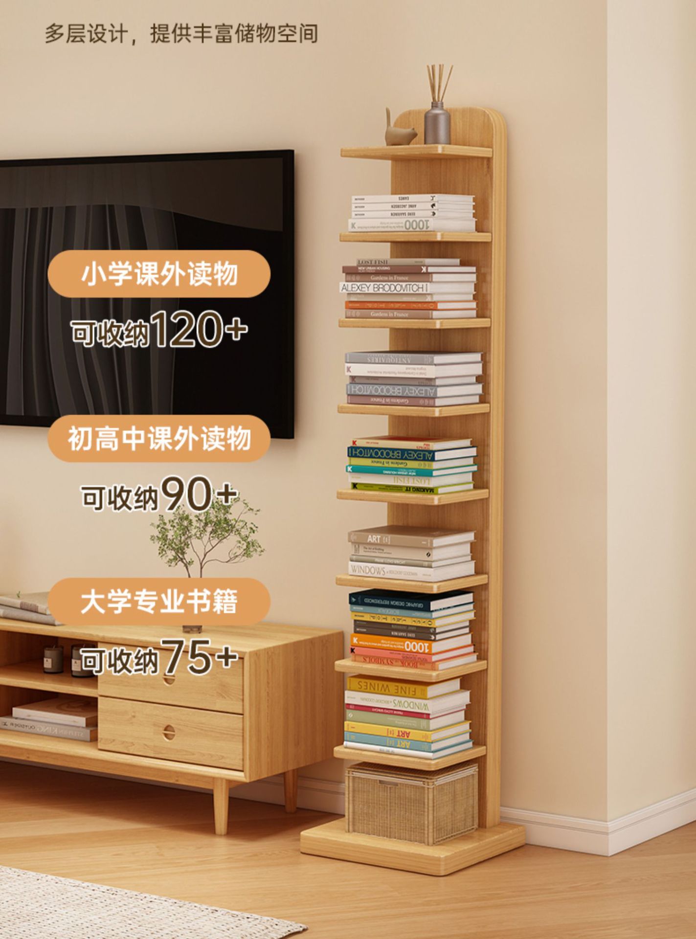 [두꺼운 베이스 플레이트가 더욱 안정적입니다.] 9단 원목 보이지 않는 책장 - 체리우드 색상 (넘어짐 방지 장치 포함)