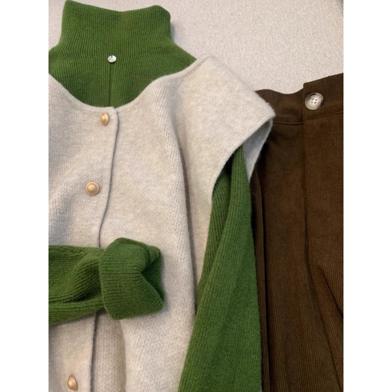 여성을위한 고급 금속 단추 니트 조끼 봄, 가을, 겨울 민소매 탑 한국 스타일 솔리드 컬러 양복 조끼 부드러운 밀랍 스웨터