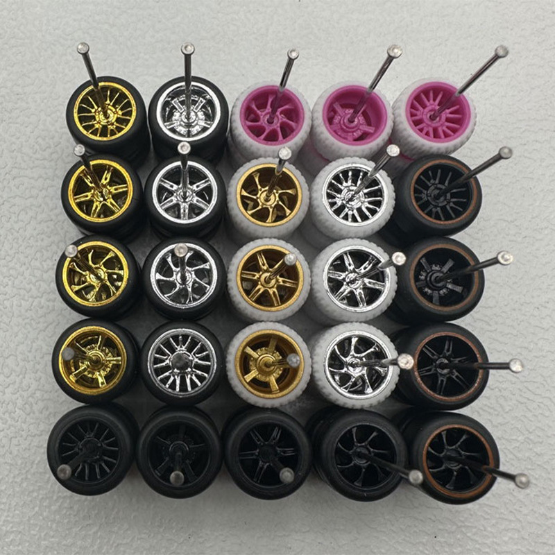 1:64 합금 자동차 모델 수정 휠 고무 타이어 원격 제어 자동차 휠 수정 액세서리