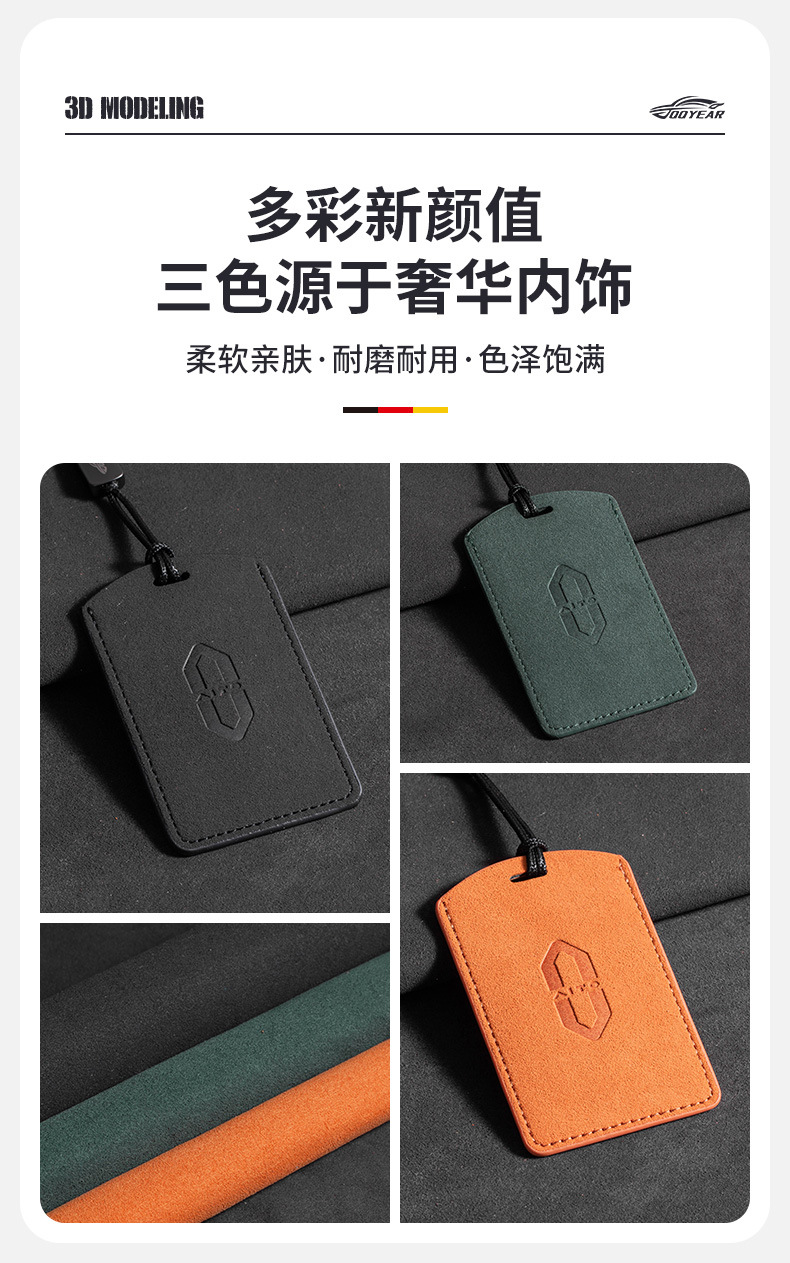 Wenjie 카드 홀더 짙은 녹색 + 자동차 로고 긴 가죽 로프