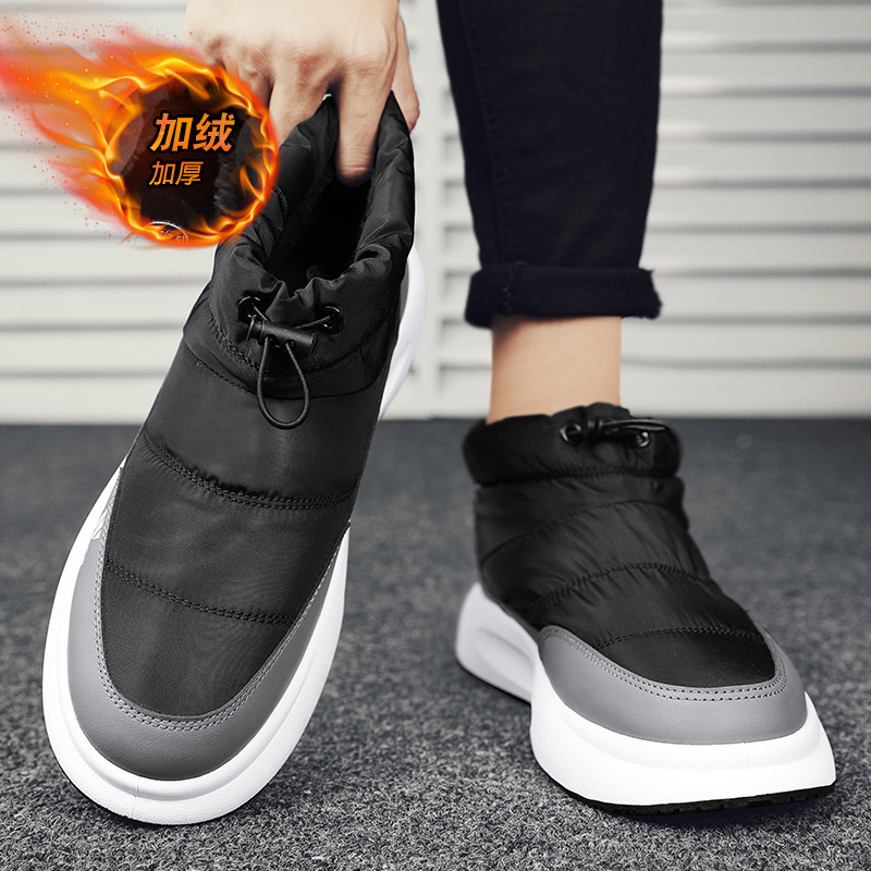 Huili 남성용 신발 2024 새로운 북동쪽 외부는 페달 따뜻한면 신발 빵 신발 겨울 기모 스노우 부츠를 착용합니다.