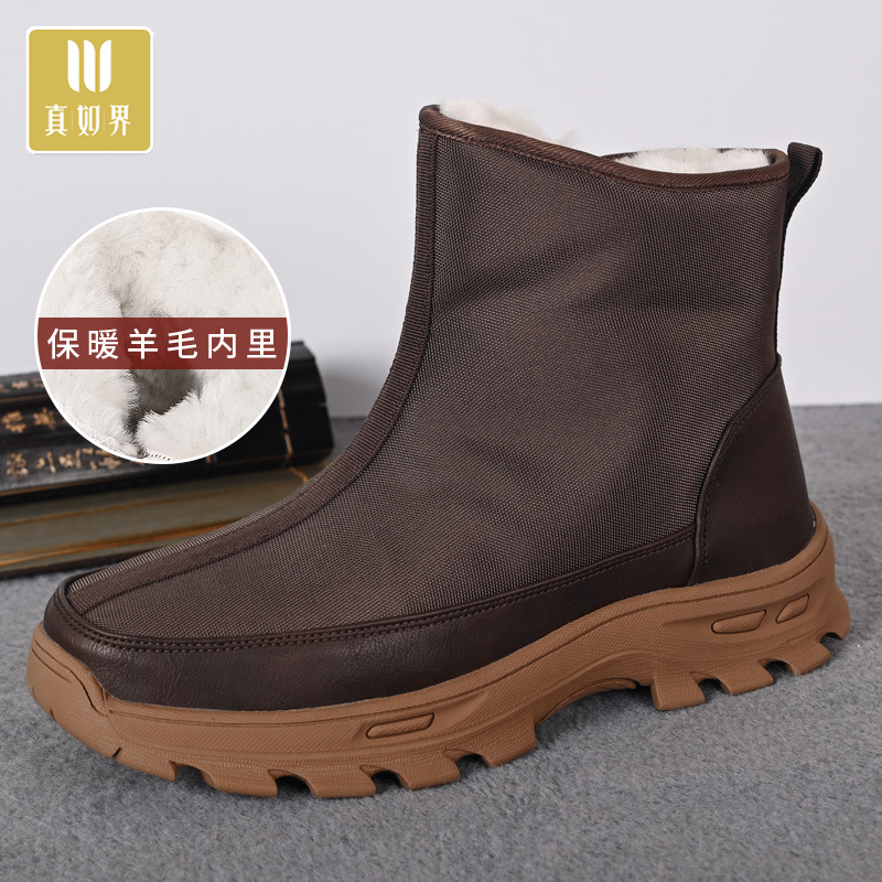 진루계 겨울 스노우 부츠, 스님 신발, 두꺼운 솜 신발, 양털 안감, 야외 워킹용 지퍼, 남녀 공용, 두꺼운 밑창