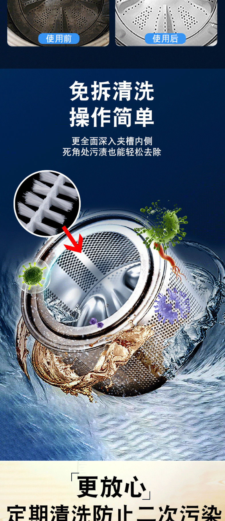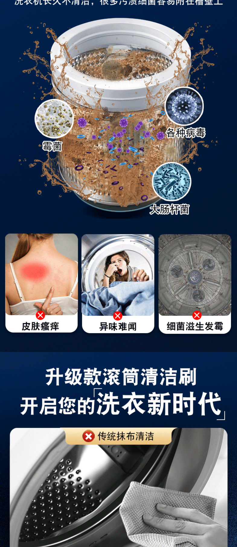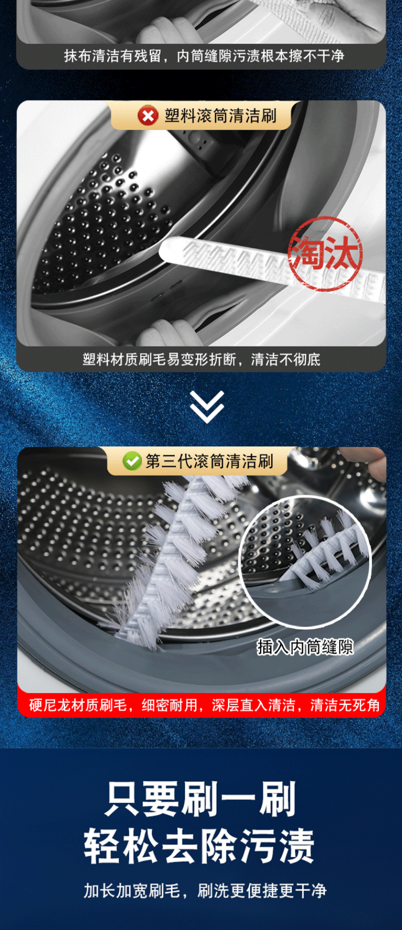 드럼 세탁기 청소 브러쉬 펄스터 제거 및 세척 내부 실린더 브러시 기계 내부 벽 긴 브러시 청소 에어컨 갭 브러시