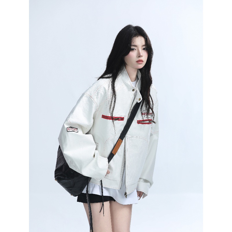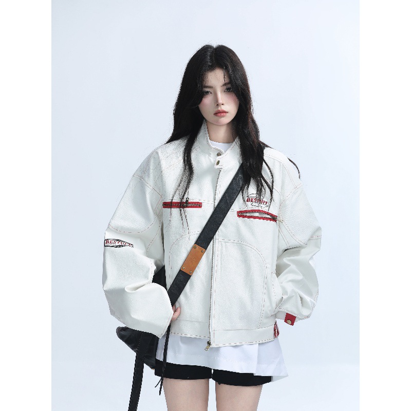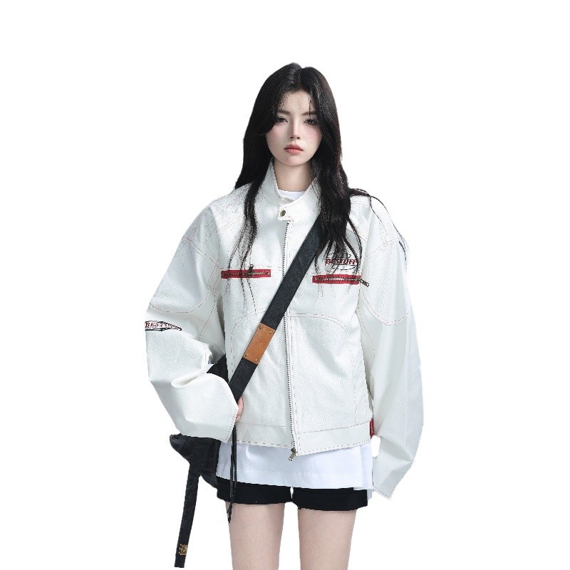 가을과 겨울 흰색 가죽 코트 남성과 여성의 높은 수준의 느낌 ruffian 잘 생긴 튀김 거리 오토바이 미국 비행가 재킷 코트 조수