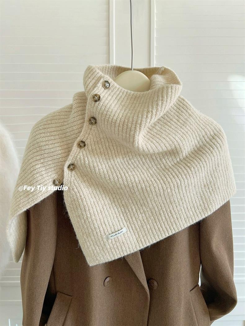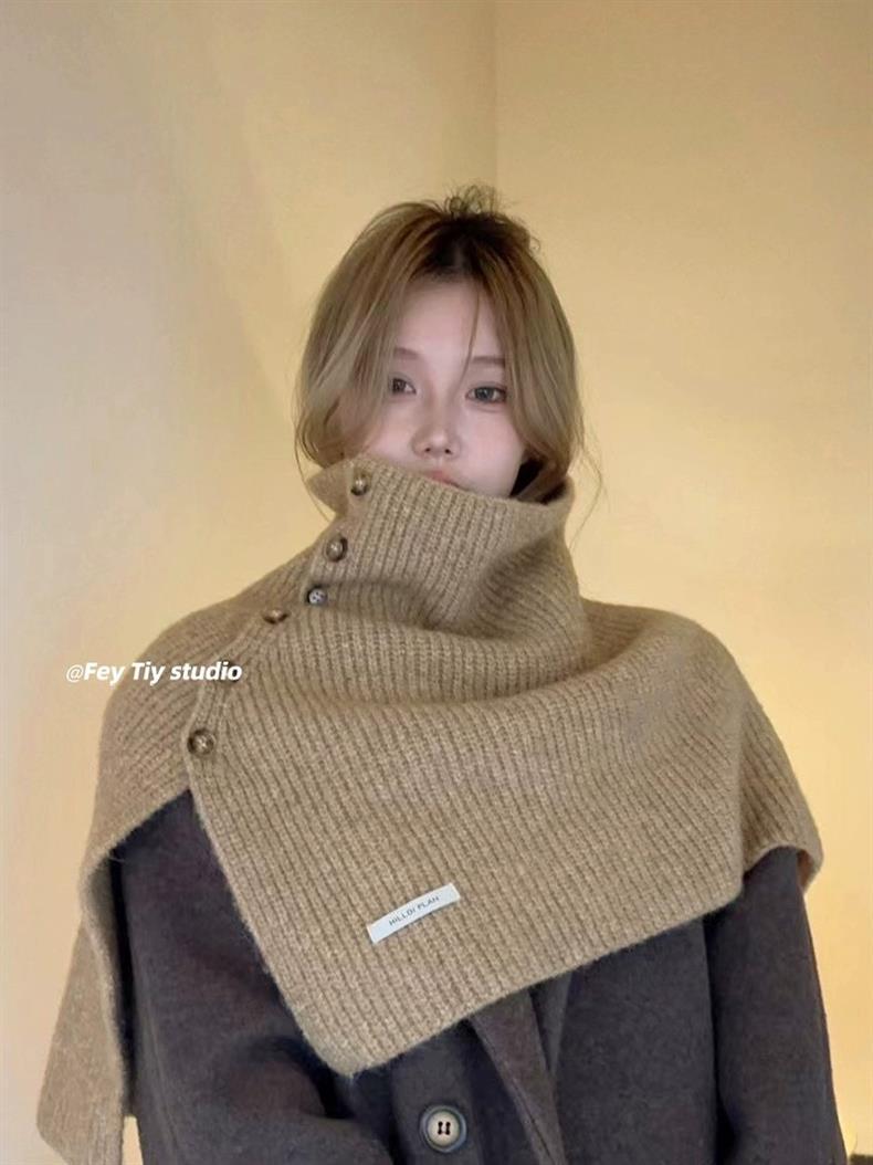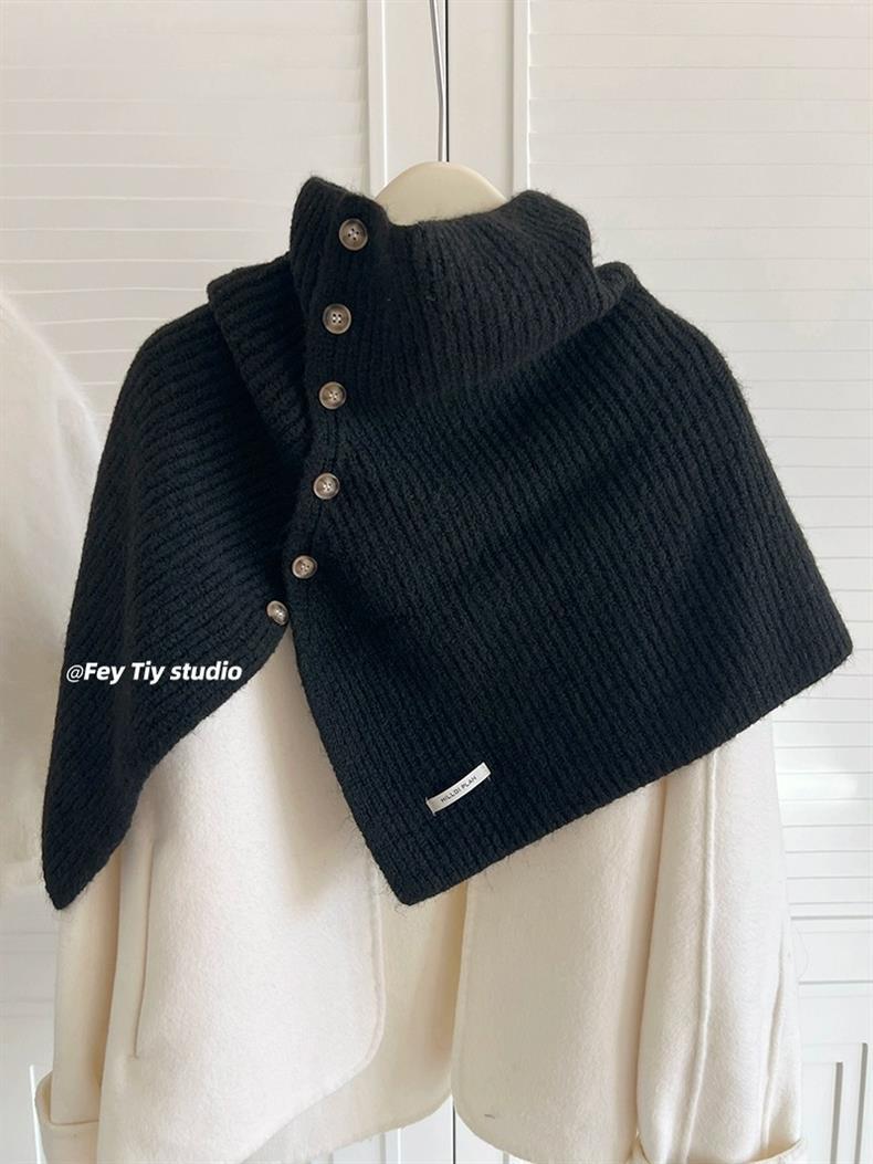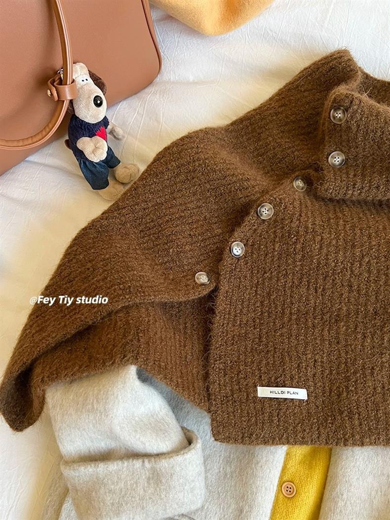 높은 칼라 버튼 유행 게으른 스타일 스카프 겨울 따뜻한 한국 인 버튼 울 니트 외관
