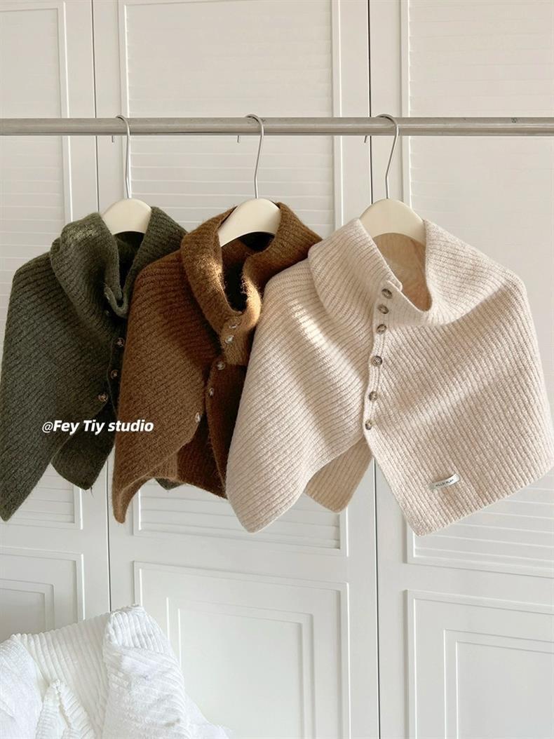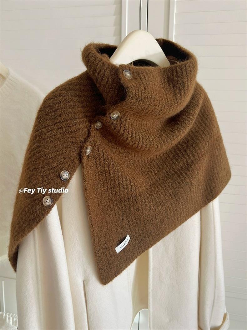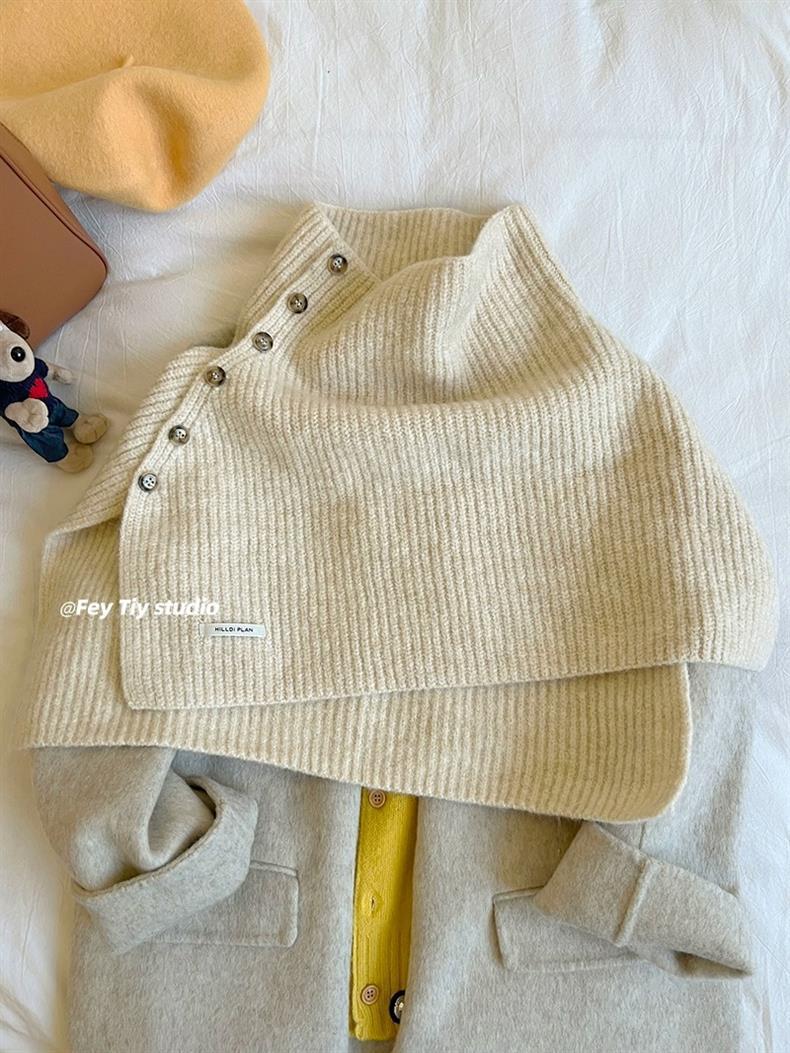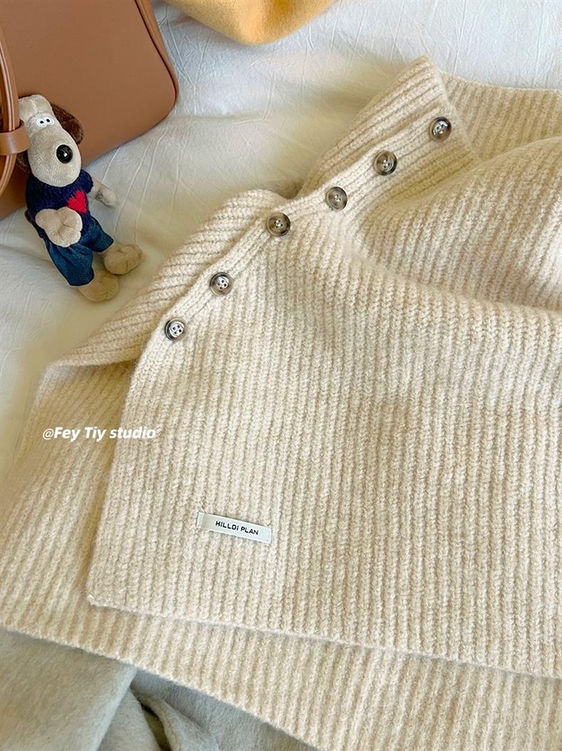높은 칼라 버튼 유행 게으른 스타일 스카프 겨울 따뜻한 한국 인 버튼 울 니트 외관