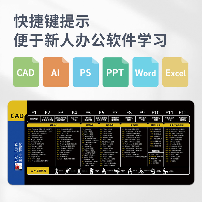 10 개의 액션 오피스 바로 가기 마우스 패드 대형 뜨거운 판매 컴퓨터 사무실 책상 패드 노트북 패드 가장자리 자물쇠