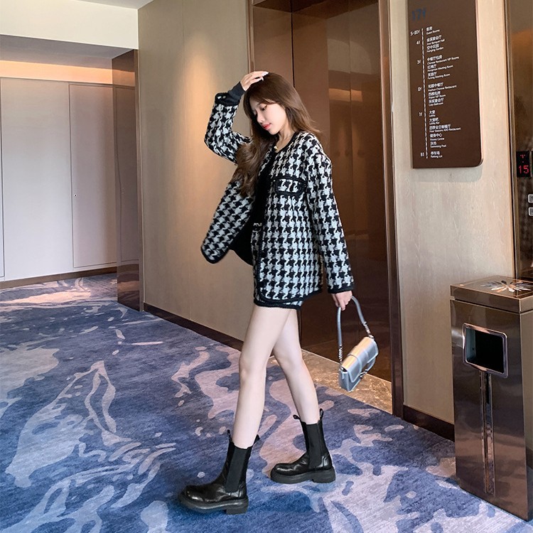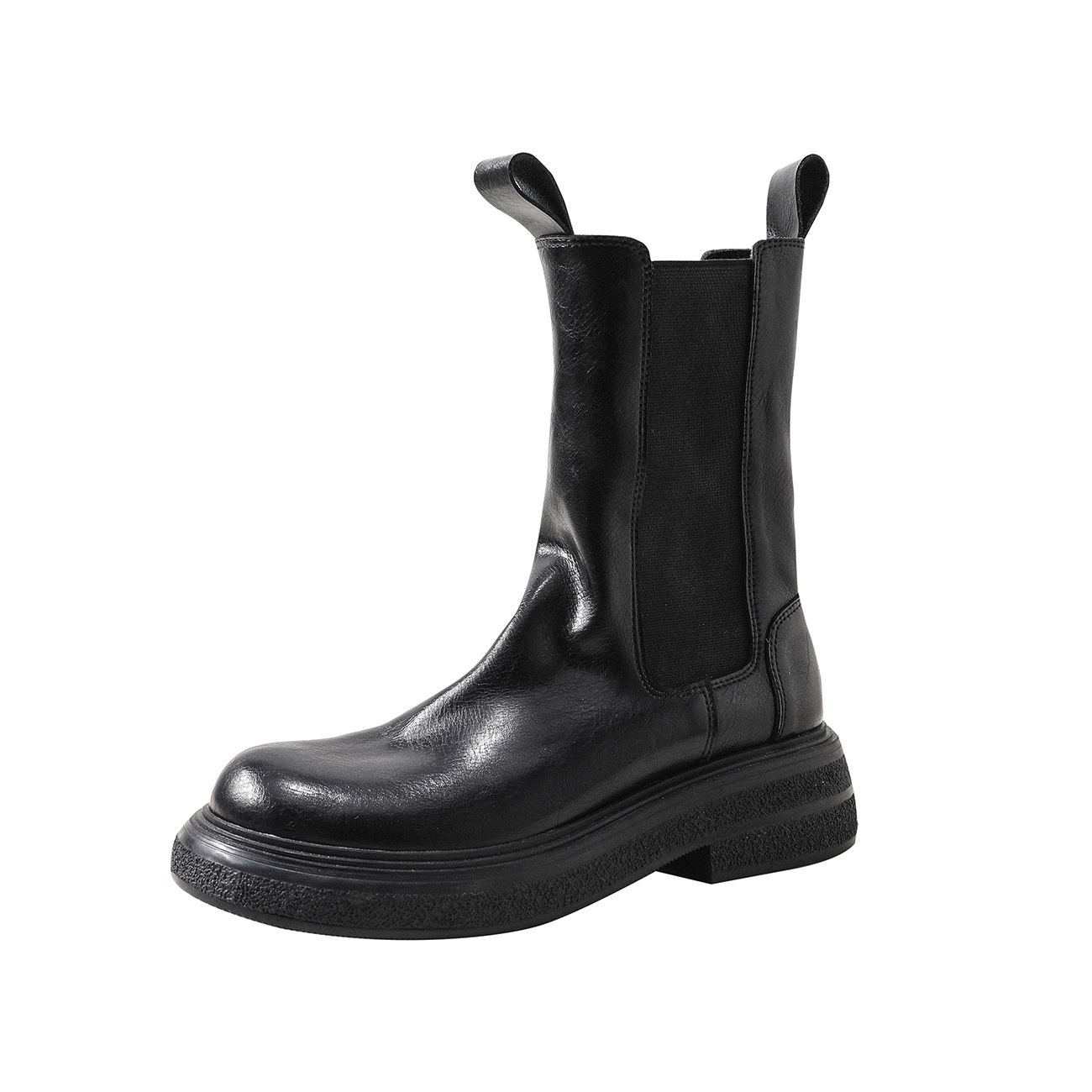 정품 가죽 빈티지 두꺼운 밑창 영국 스타일 첼시 발목 부츠 여자 가을과 겨울 기모 주름 스모크 부츠 마틴 부츠