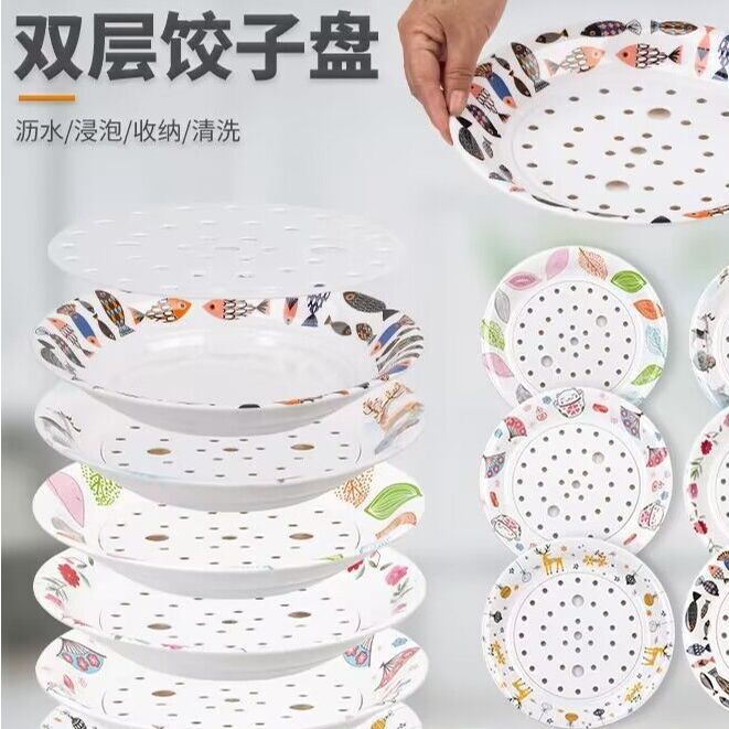 멜라민 만두 접시 배수 더블 레이어 고급 도자기 플레이트 다목적 플레이트 과일 플레이트 식기 가정용 창조적 인 과일 플레이트