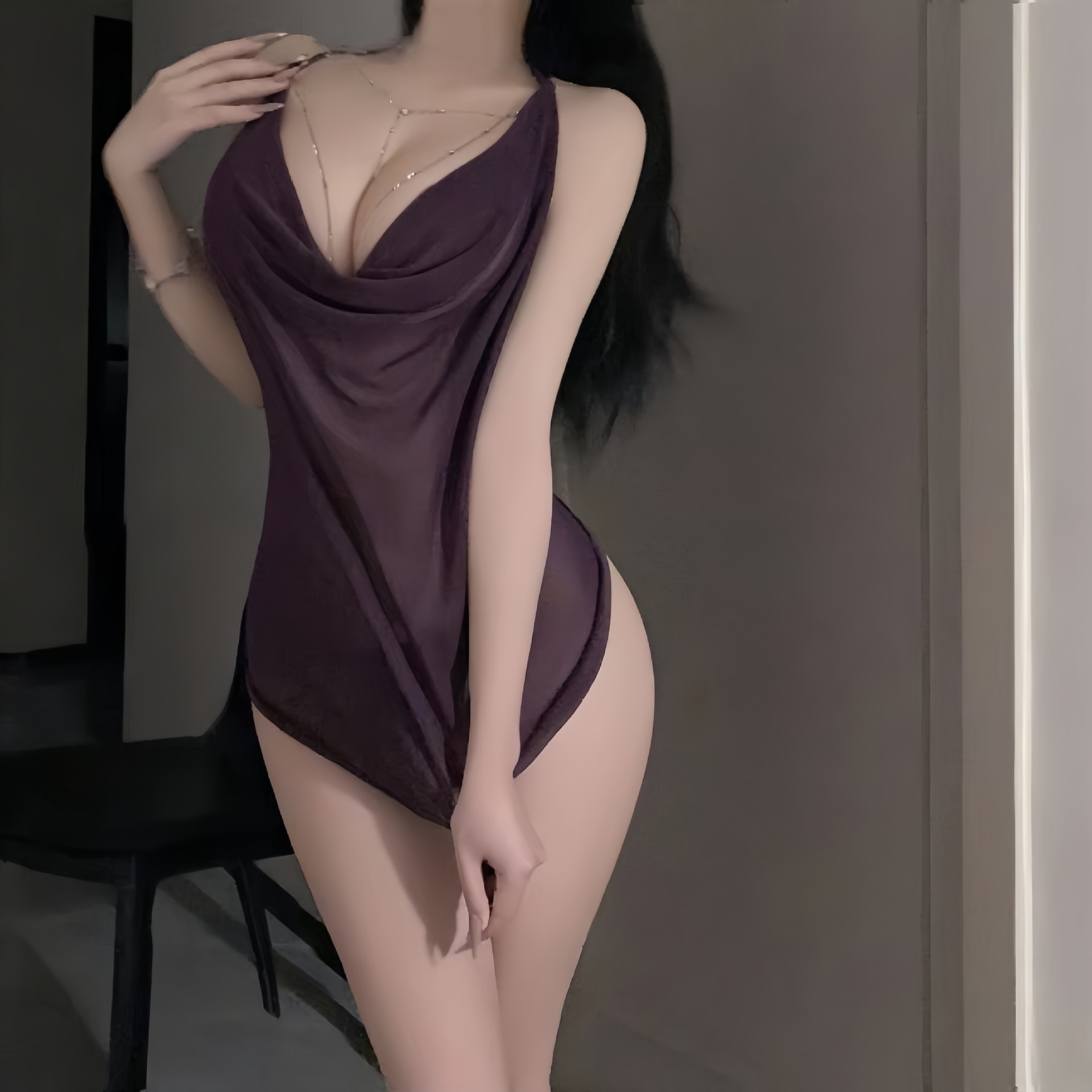 남자의 욕망 란제리 섹시한 순수한 욕망 퍼플 스윙 칼라 벨리 스타일 파자마스 관점 유혹 없음 이륙 유니폼 9339
