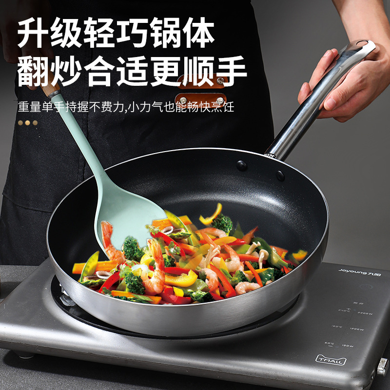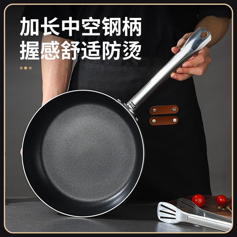 不沾平底锅 食品级不粘涂层煎锅 不锈钢手柄煎蛋牛排锅 酒店家用通用