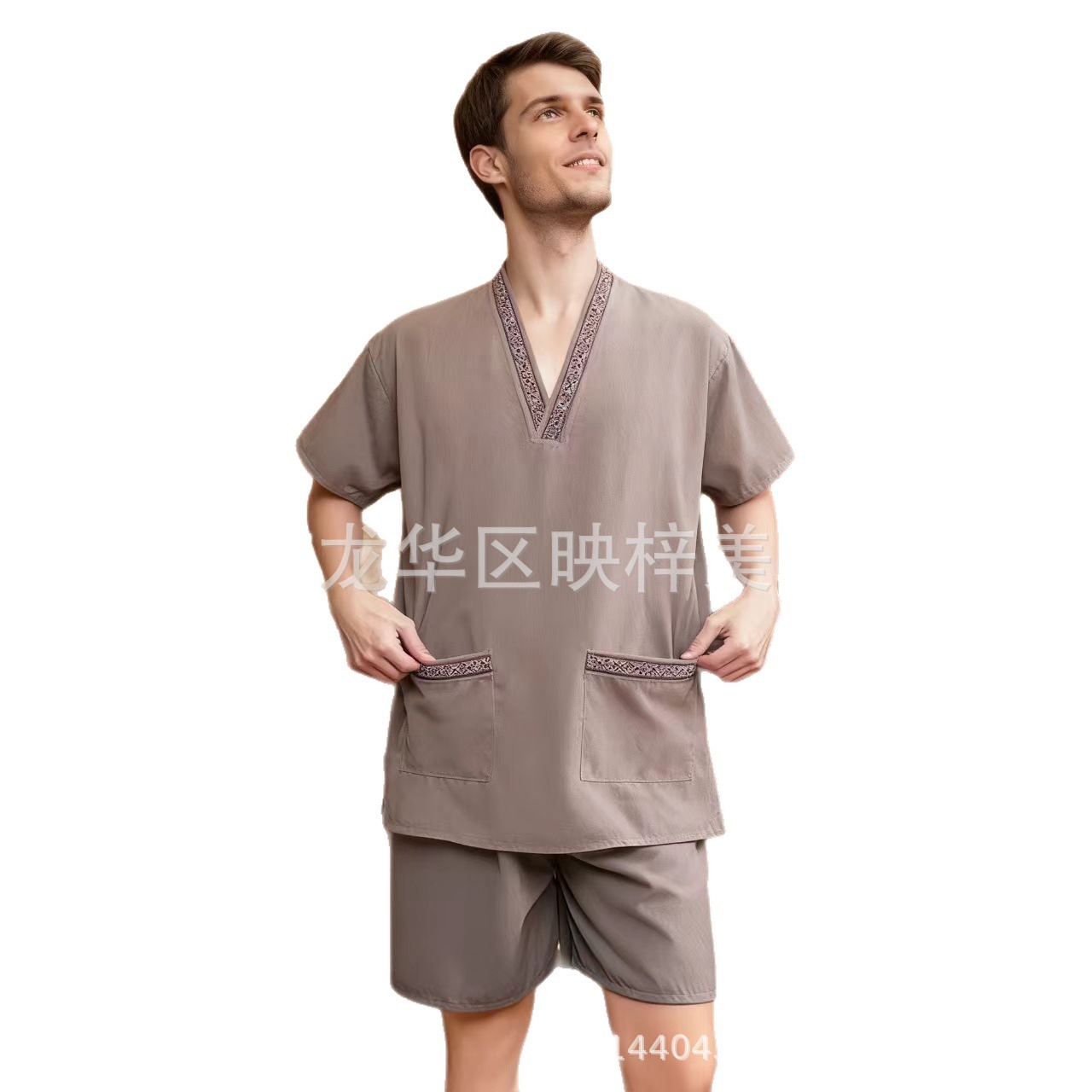 공 대마 패브릭 웨빙 칼라 새로운 땀 김이 나는 의류 제조업체 직접 배치 사우나 의류 발 마사지 목욕 가운 스타일 옵션