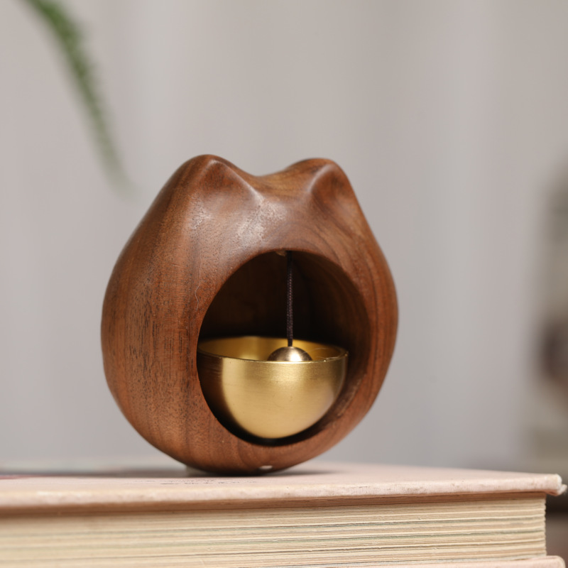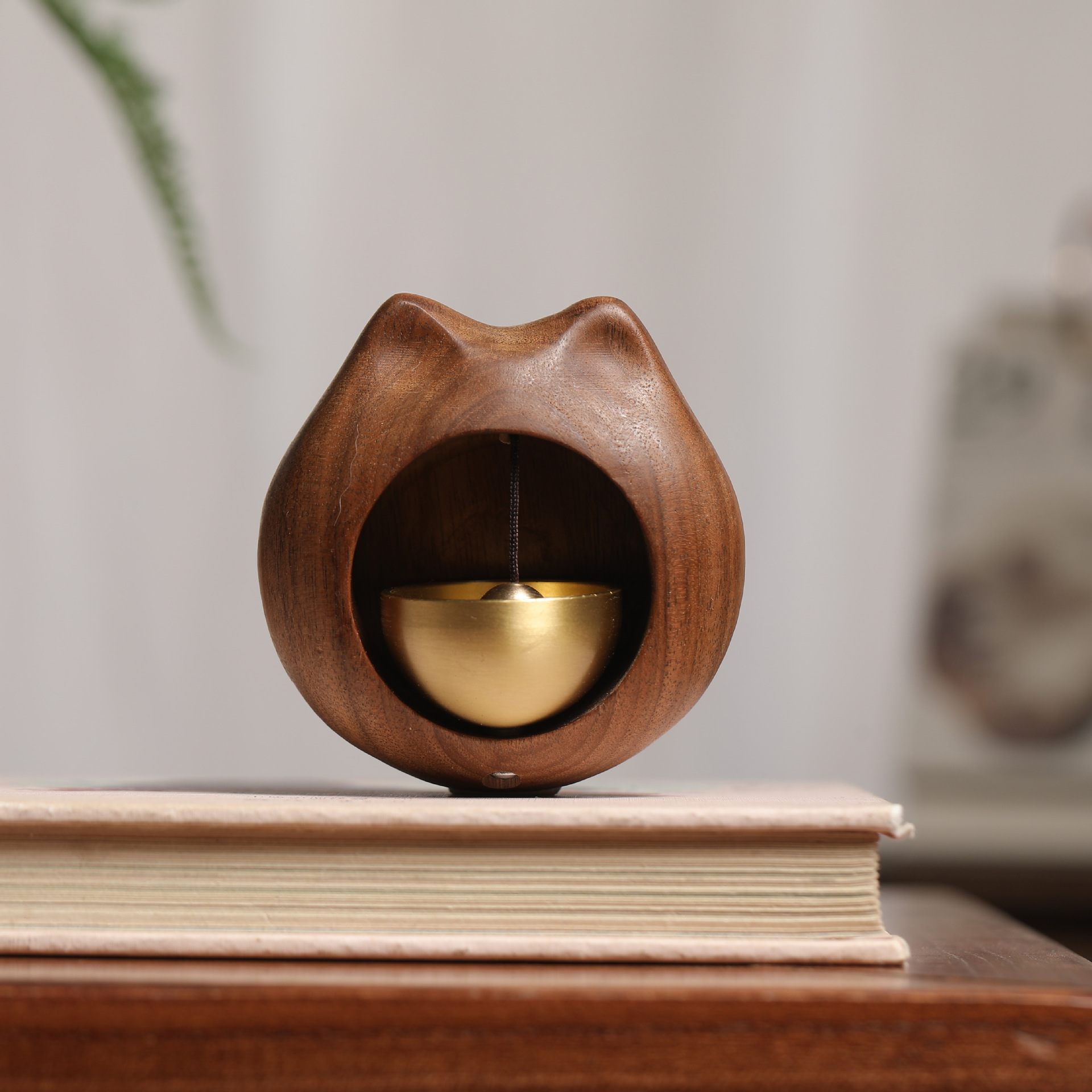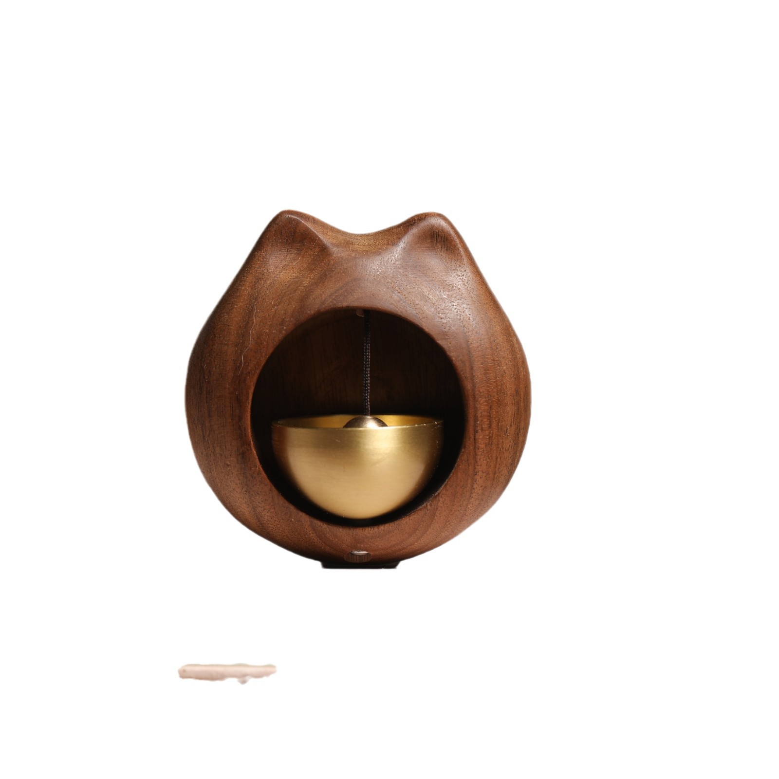 공장 직접 판매 검은 샌달 우드 행운의 고양이 초인종 펜던트 창조적 인 자기 홈 장식 치유 단단한 나무 초인종 펜던트