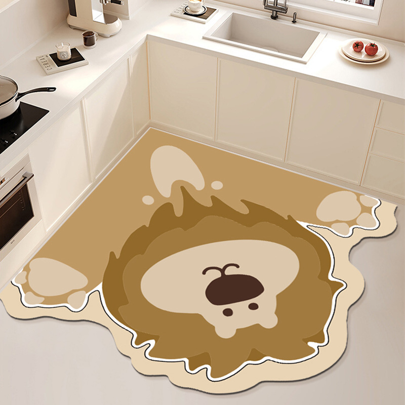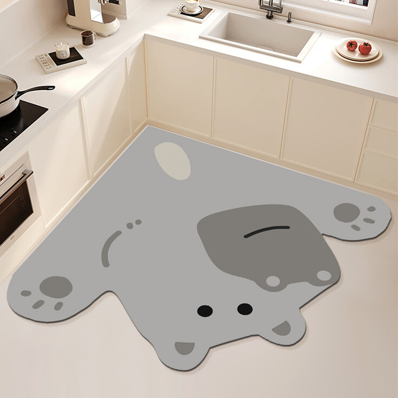만화 귀여운 동물 L 자형 주방 특수 Diatom 진흙 미끄럼 방지 흡수성 바닥 매트 쉬운 청소 먼지 방지 장식 바닥 매트