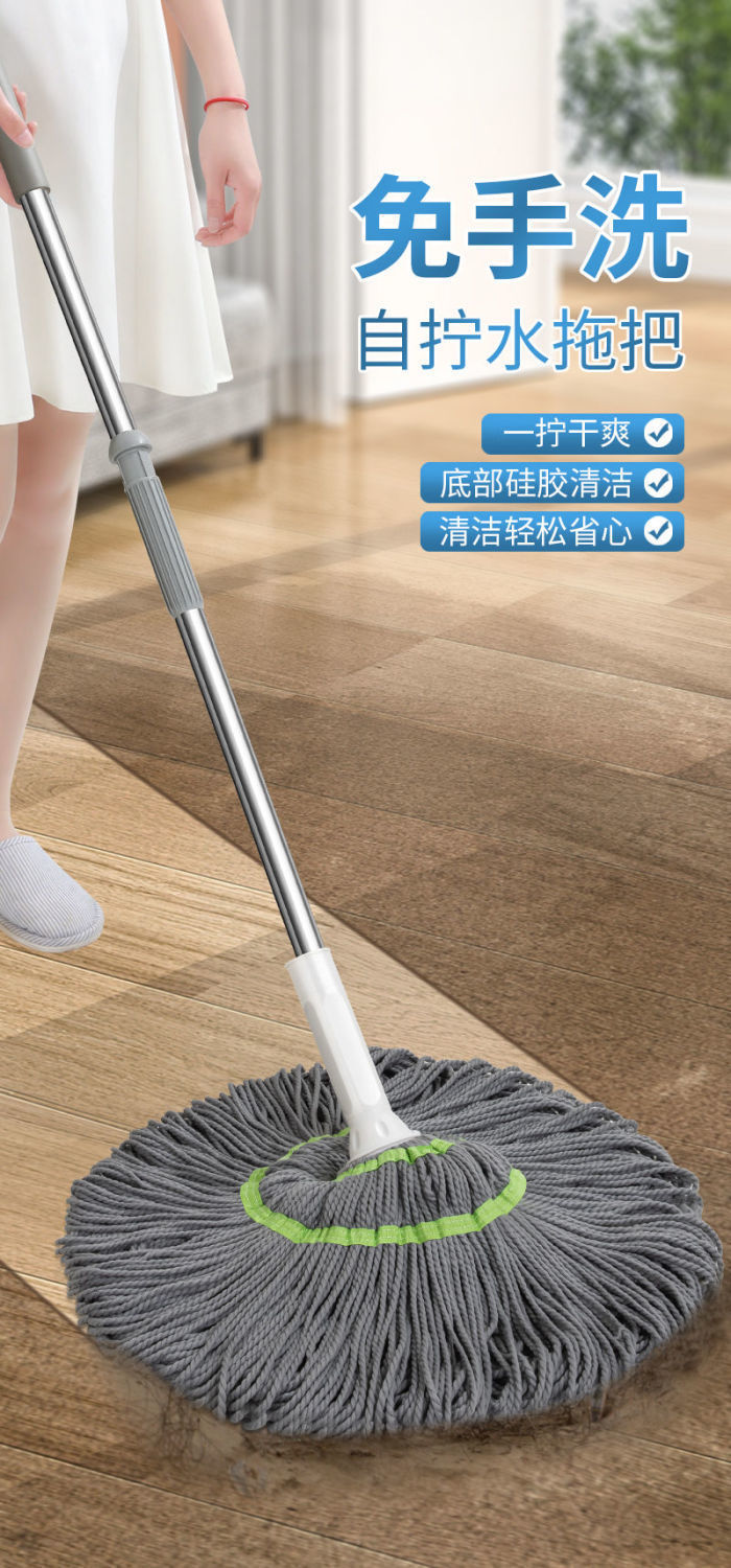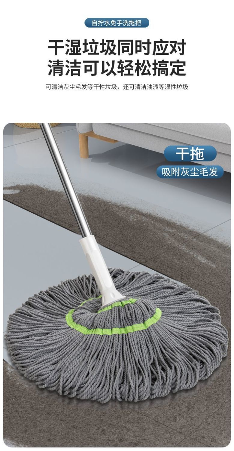 세척없는 자체 비틀기 물 회전 걸레 가정용 게으른 걸레 물 흡수성 걸레 건조 및 젖은 두 가지 목적 걸레 청소