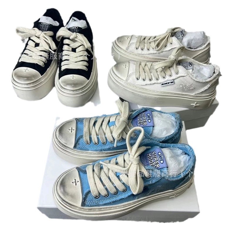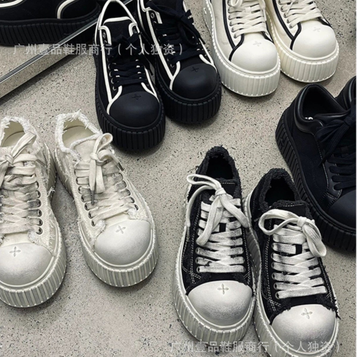 하이 버전 ~ XSMFK 새로운 길 잃은 스케이트 보드 신발 플랫폼 케이크 힐 두꺼운 바닥 비스킷 신발 오래된 캐주얼 캔버스 더러운 신발