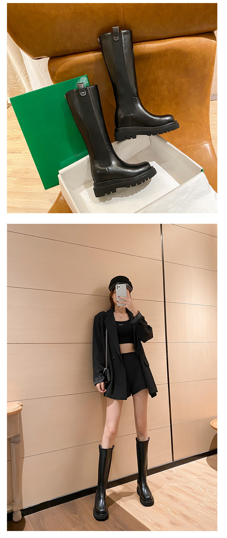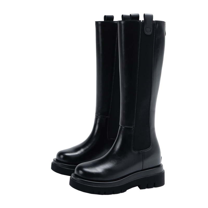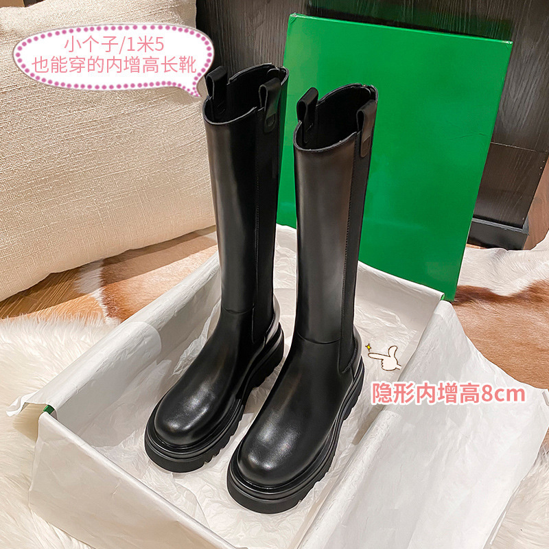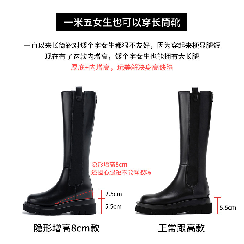 소가죽 버전~ 여성용 신형 내부 높이 증가 카멜리온 부츠, 따뜻하고 벨벳 탄성 두꺼운 밑창 무릎 위 부츠