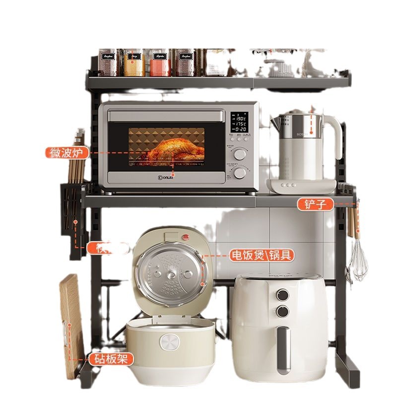 전자 레인지 쌀밥솥 조절 가능하고 확장 가능한 3 층 저장 랙 보관 양념 밥솥 주방 보관 랙