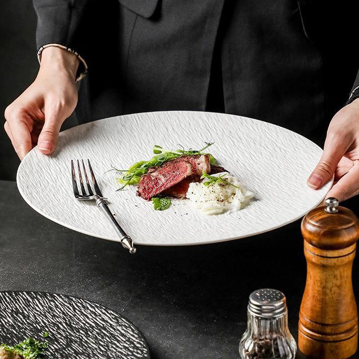 바위 곡물 서양 음식 접시 스테이크 플레이트 느낌 얕은 플레이트 평판 가정용 접시 PP 플레이트 일본 디스크 호텔 식기 도매