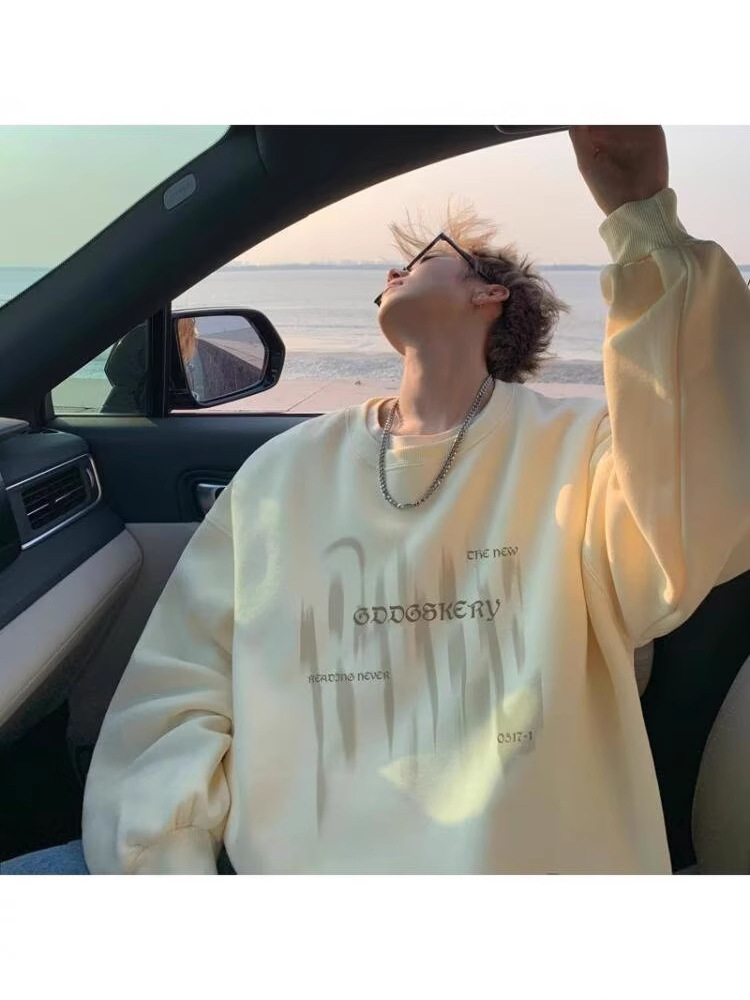 무거운 중국면 크루 넥 스웨터 남자 가을 미국 느슨한 플러스 사이즈 모자리스 베이스 셔츠 커플의 코트 유행 올 매치