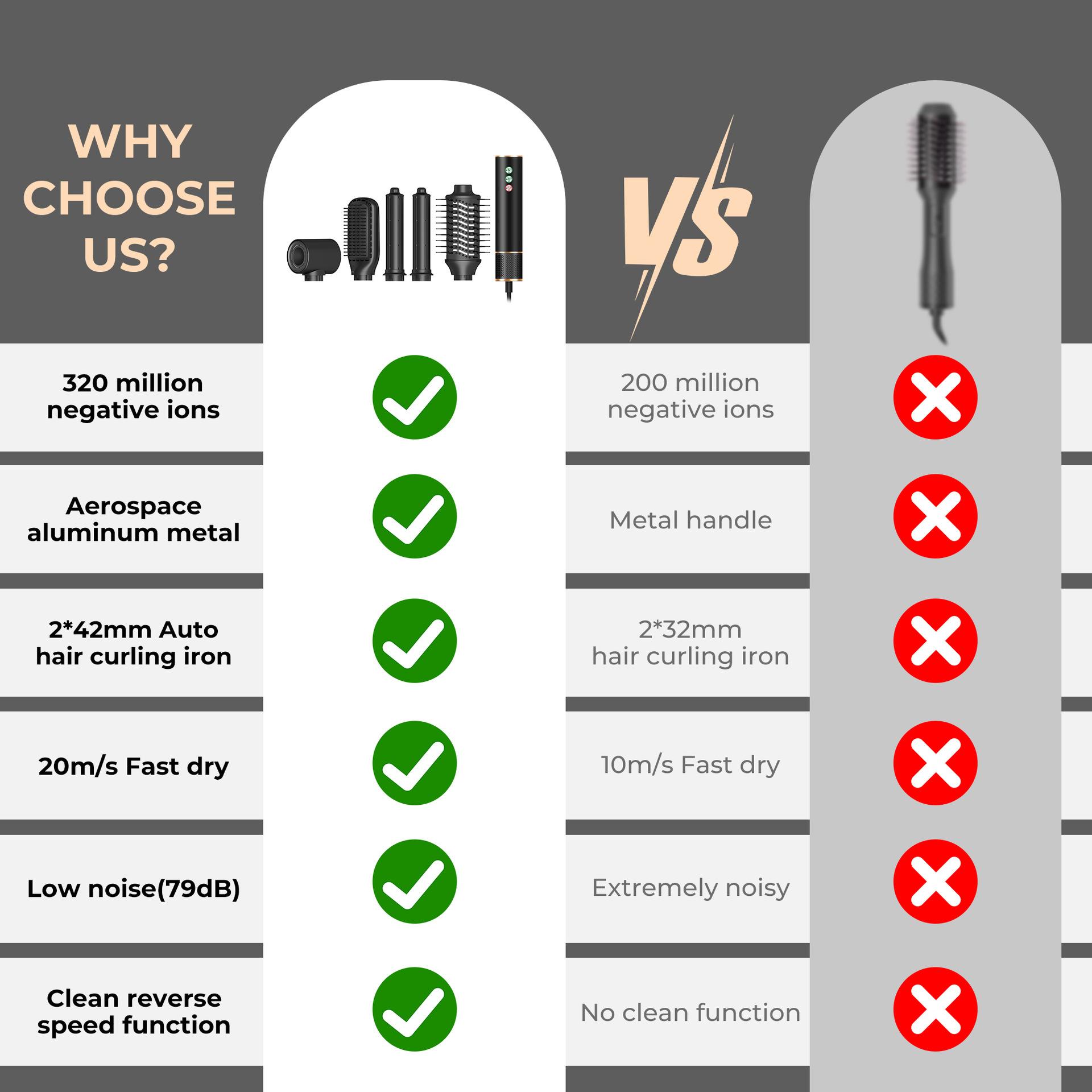 5-in-1 열풍 빗 고속 헤어드라이어 자동 컬링 아이언 듀얼 기능 스타일링 빗 음이온