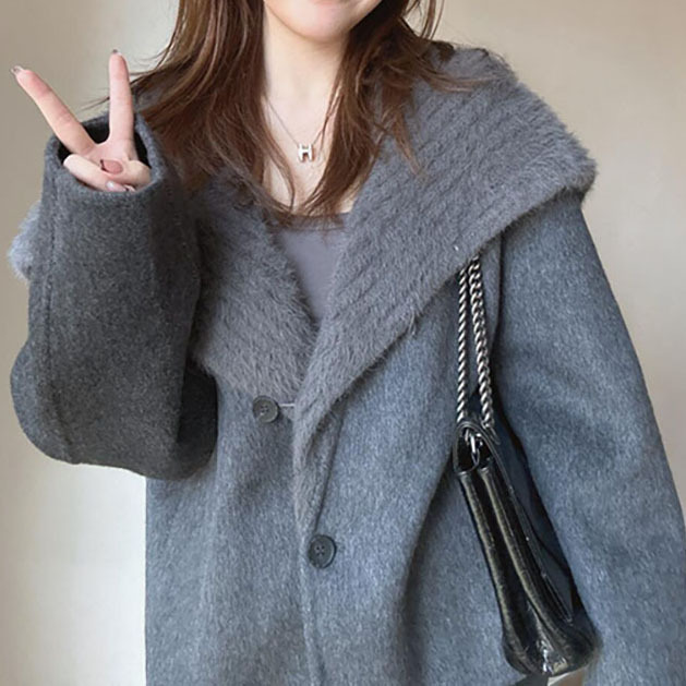 2024 새로운 턴오버 칼라 양면 모직 코트 여성의 짧은 작은 샤넬 스타일 명암 컬러 모직 코트