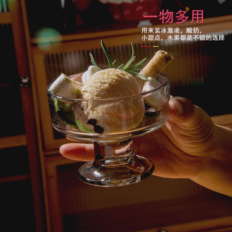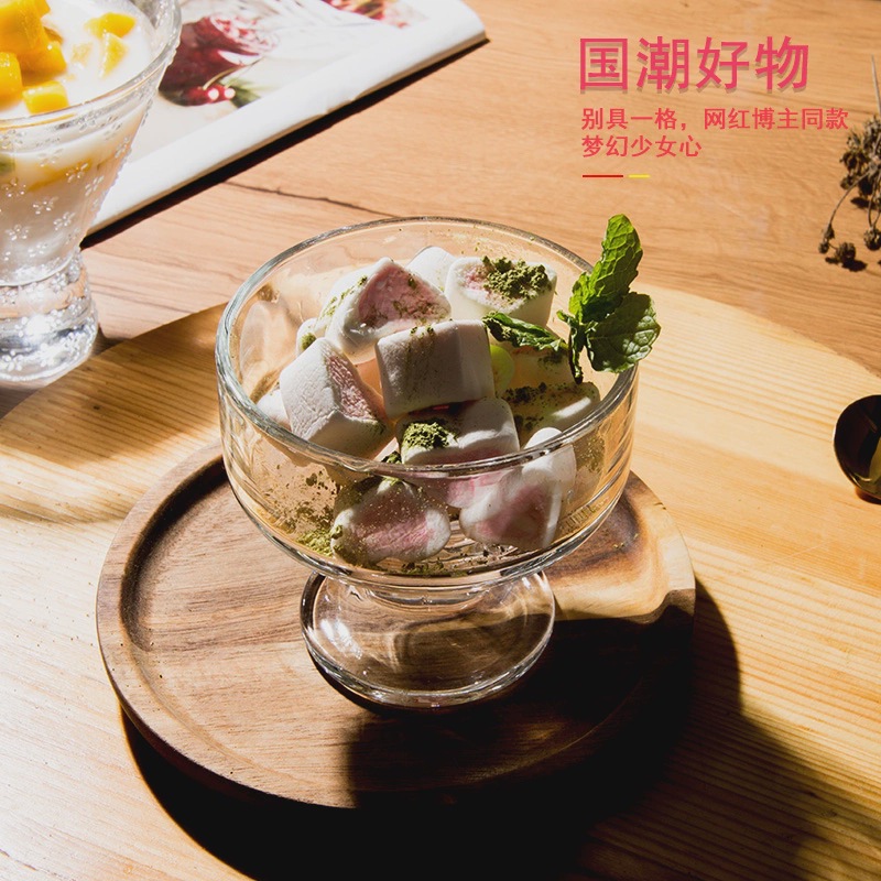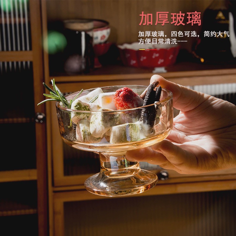 디저트 그릇 아이스크림 유리 작은 그릇 키 큰 식기 스무디 요구르트 푸딩 과일 키 큰 그릇 아이스크림 컵