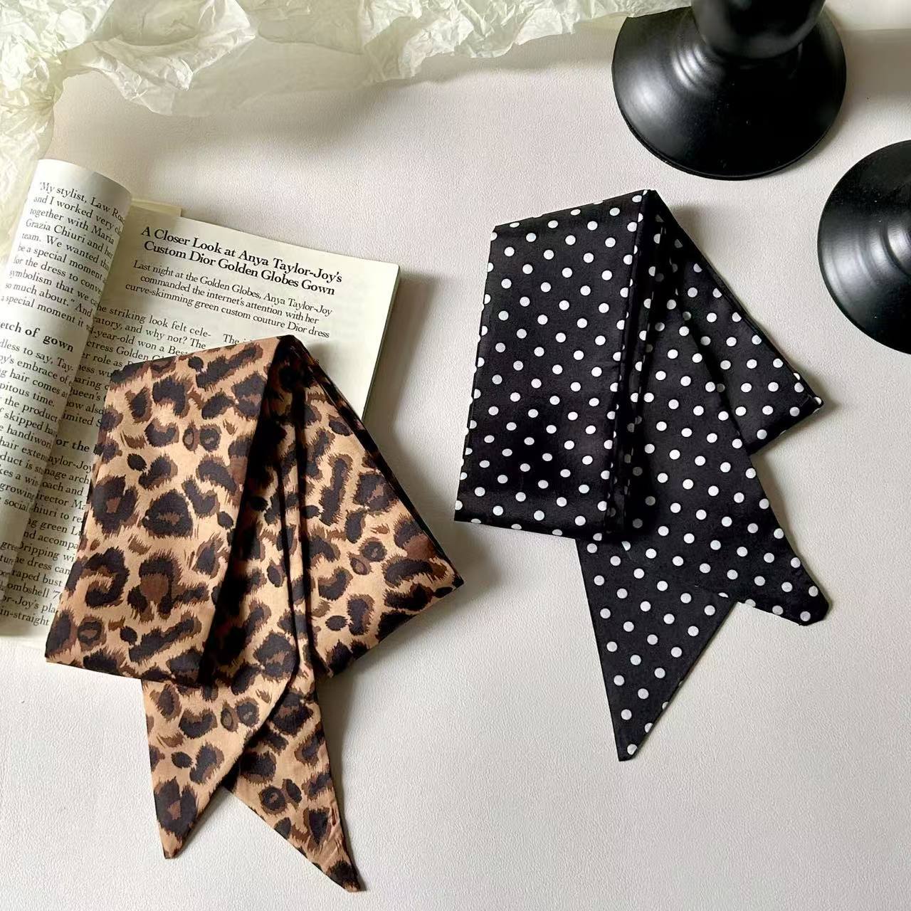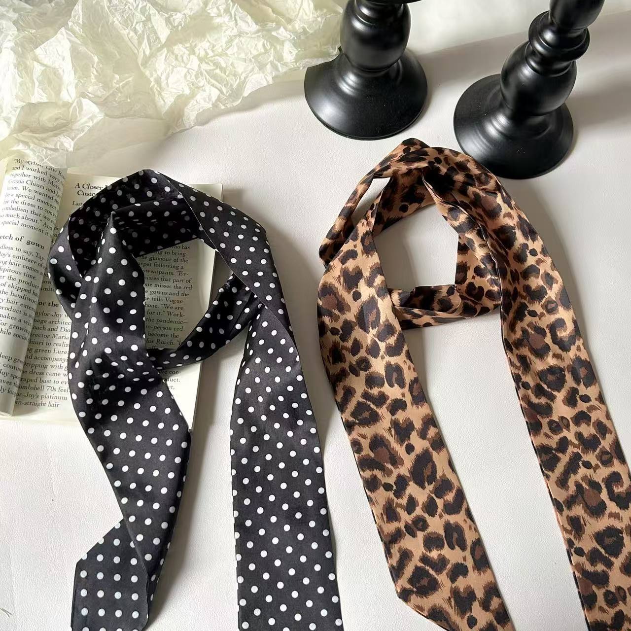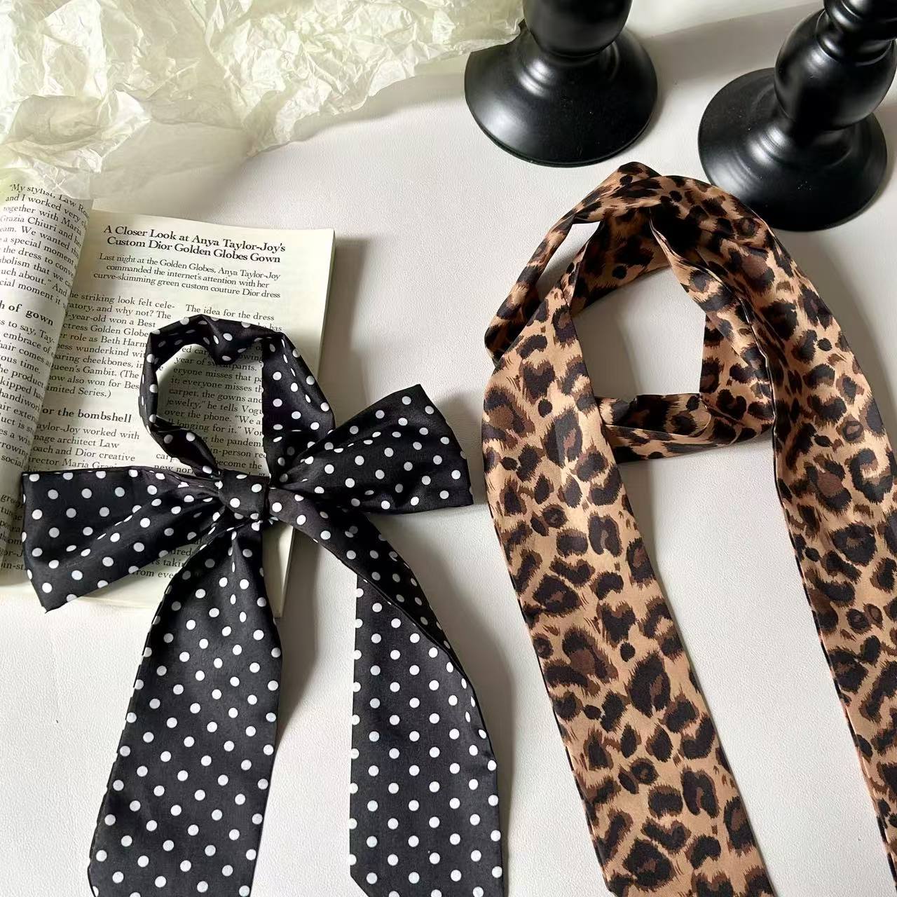 한국 레오파드 무늬 미적 복고풍 얇은 좁은 긴 스카프 넥타이 헤어 벨트 장식 패션 디자인 센스 스카프 여성