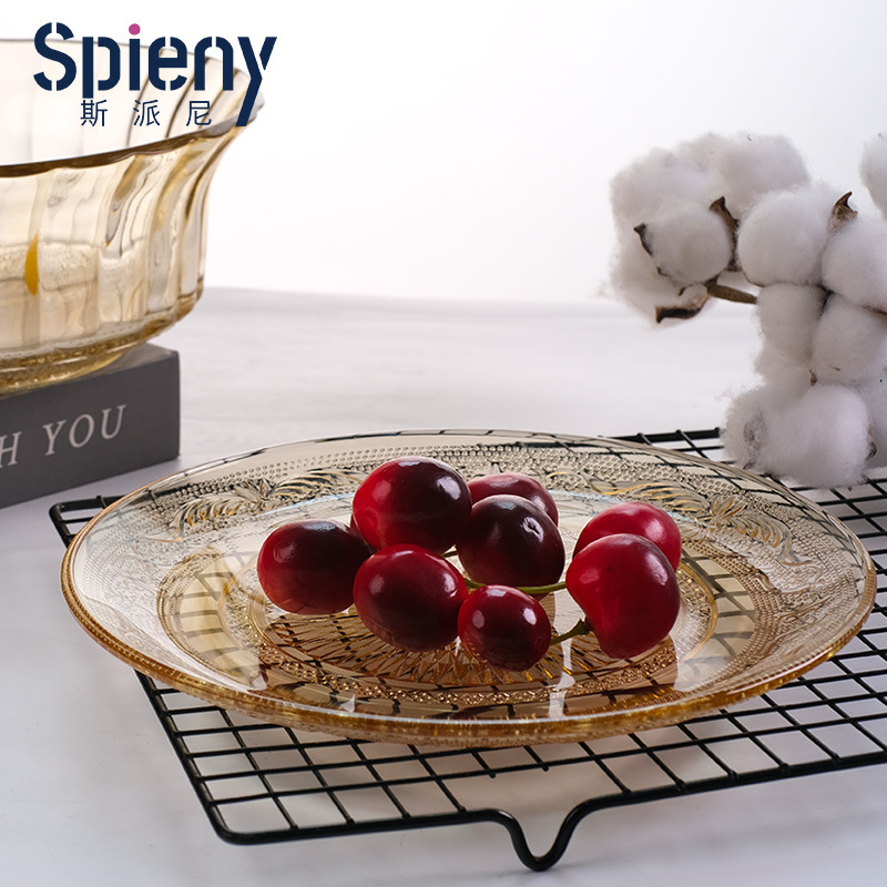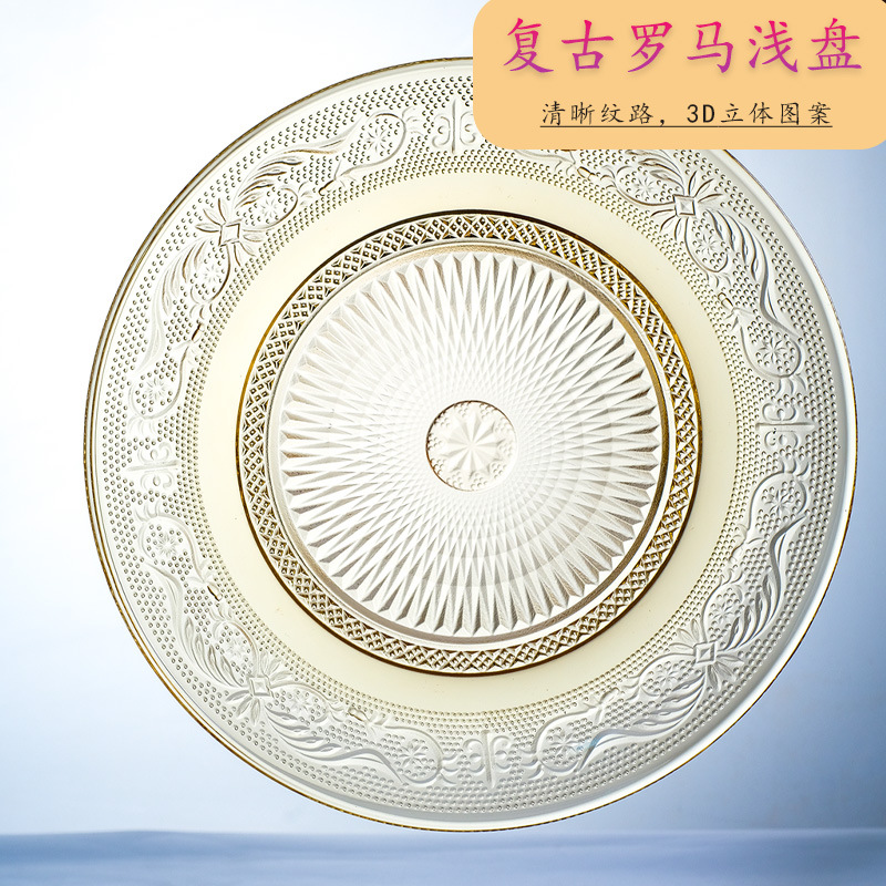 스파니 빈티지 로마 디너 플레이트 얕은 플레이트 높은 붕규산염 유리 앰버 플레이트 가정용 전자 레인지