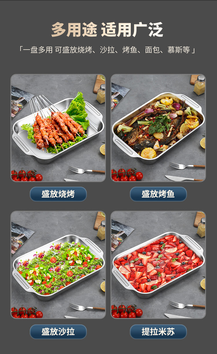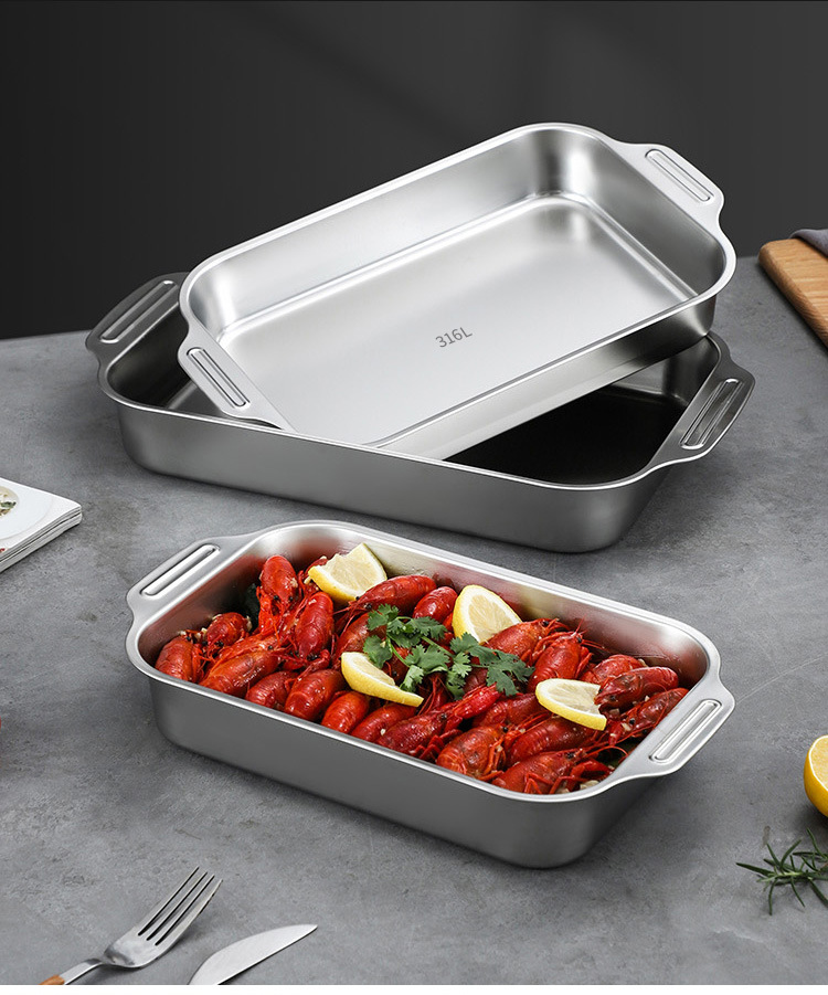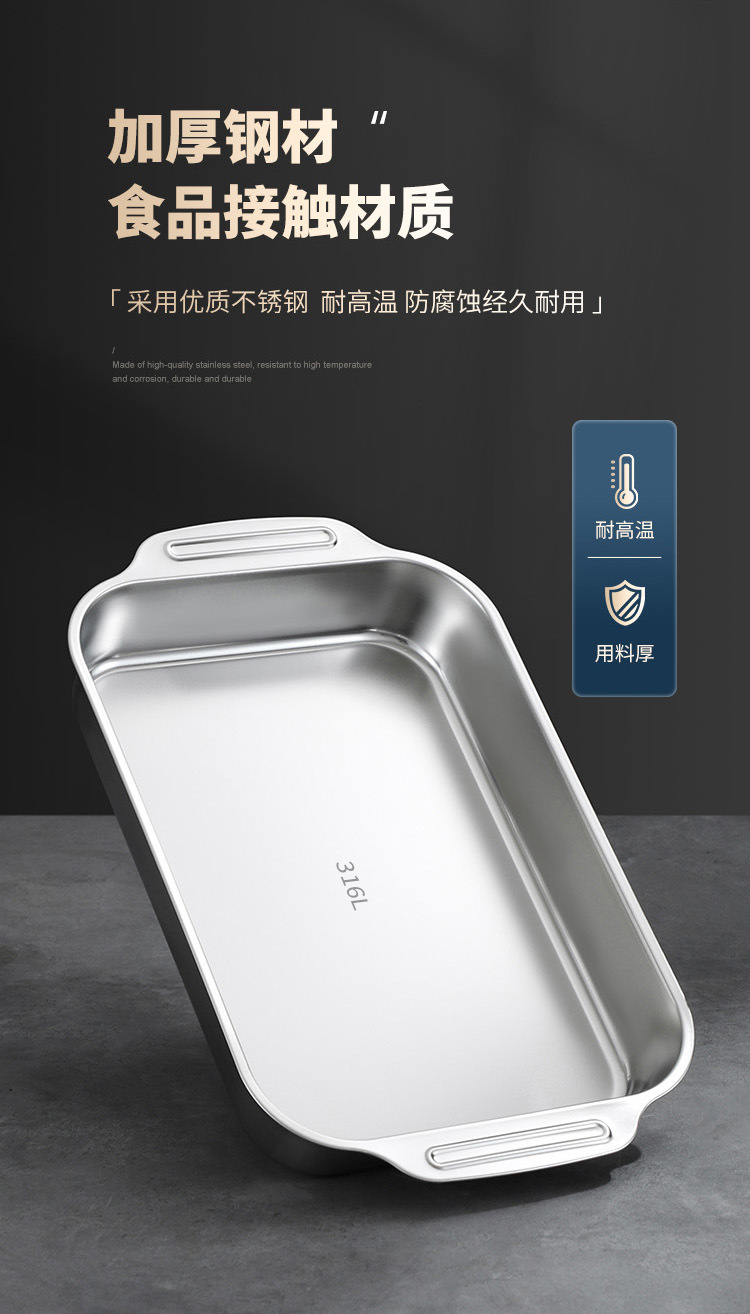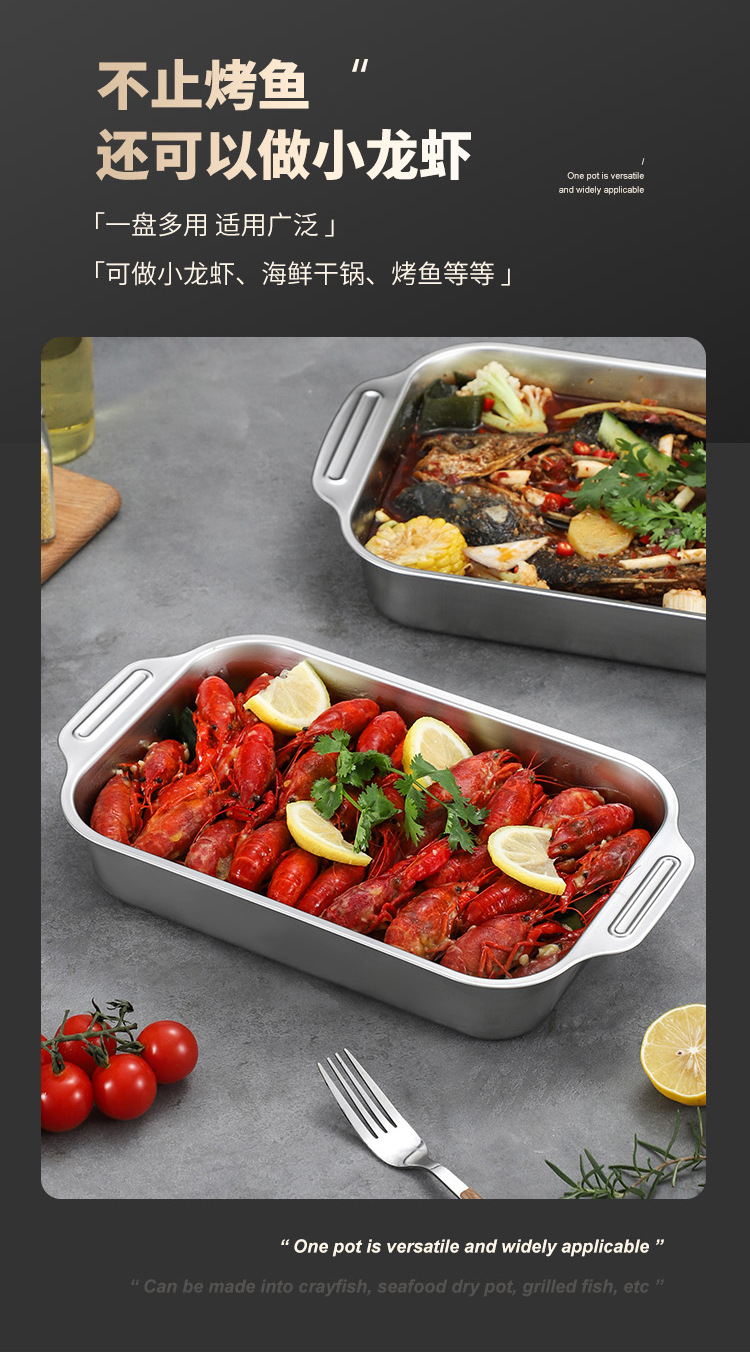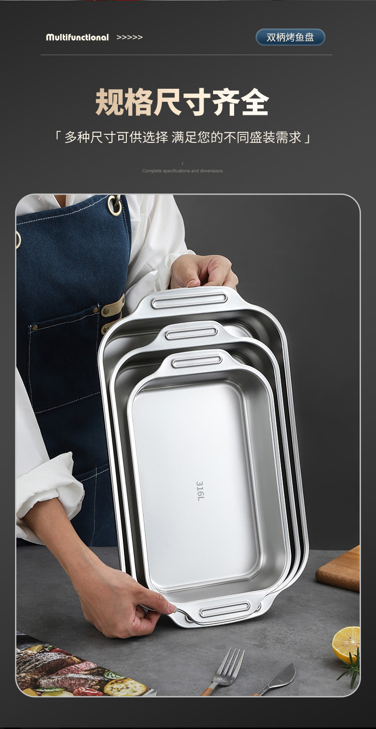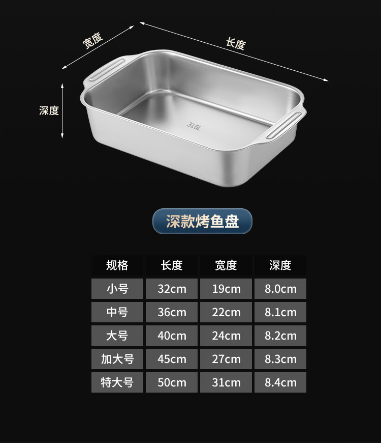 스테인레스 스틸 구운 어판 316 식품 등급 가정용 직사각형 유도 쿠커 베이킹 피쉬 플레이트 오븐 화재