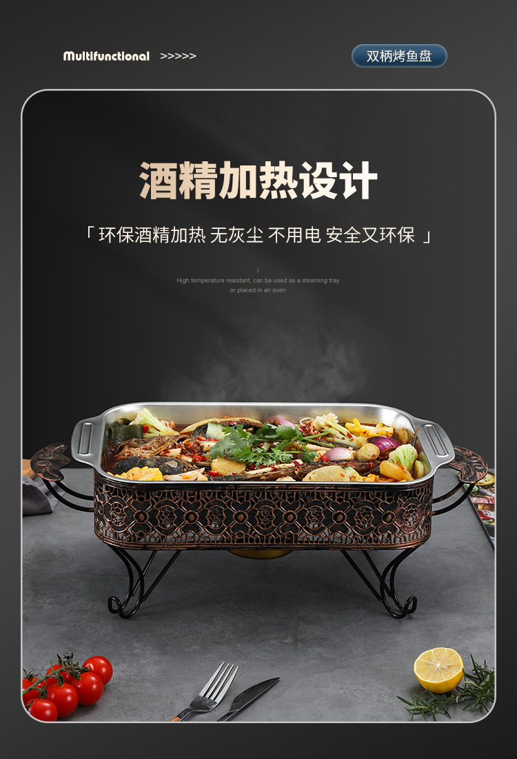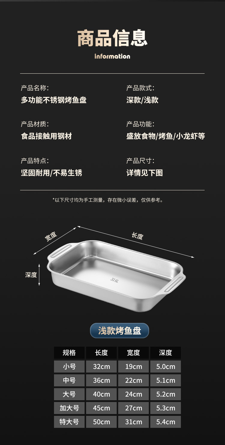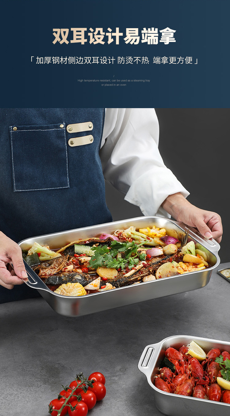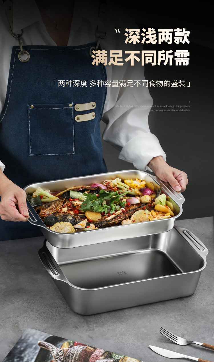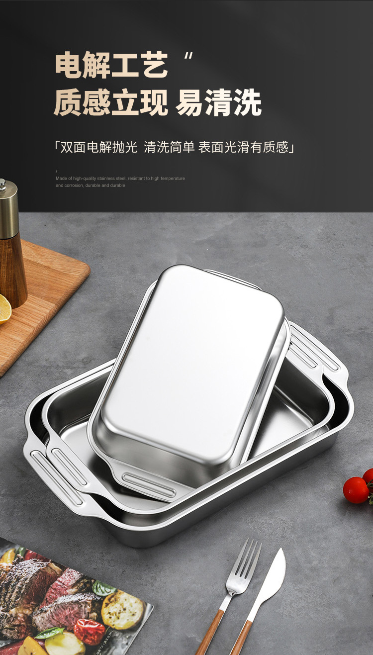 스테인레스 스틸 구운 어판 316 식품 등급 가정용 직사각형 유도 쿠커 베이킹 피쉬 플레이트 오븐 화재