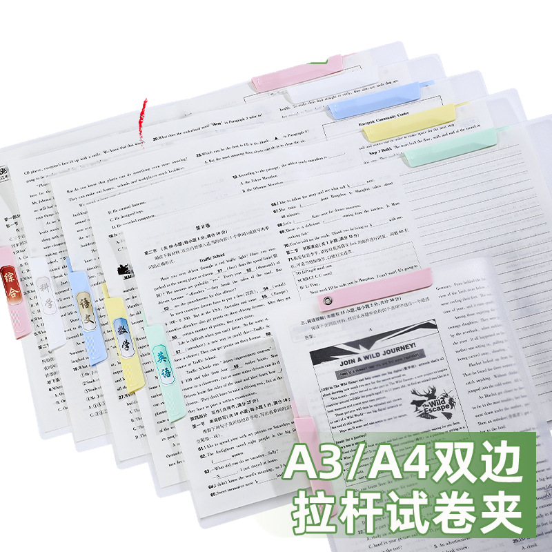 A3 더블 타이로드 회전 테스트 종이 클립 학생 특수 두꺼운 A4 로드 클립 사무실 분류 색상 투명 폴더