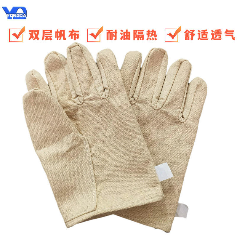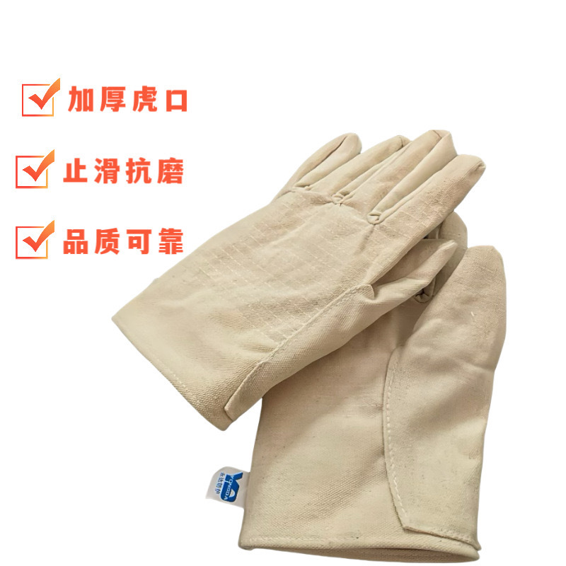 소스 공장 이중 캔버스 장갑 완전히 안감 오일 방지 흰색 천 장갑 내마모성 보호 노동 보호 용품 도매