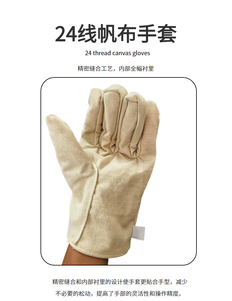 24线双层帆布手套全衬加厚电焊手套工作耐好用磨焊工  焊工手套双层加厚帆布手套24道线耐磨白甲布手套劳保防护手套