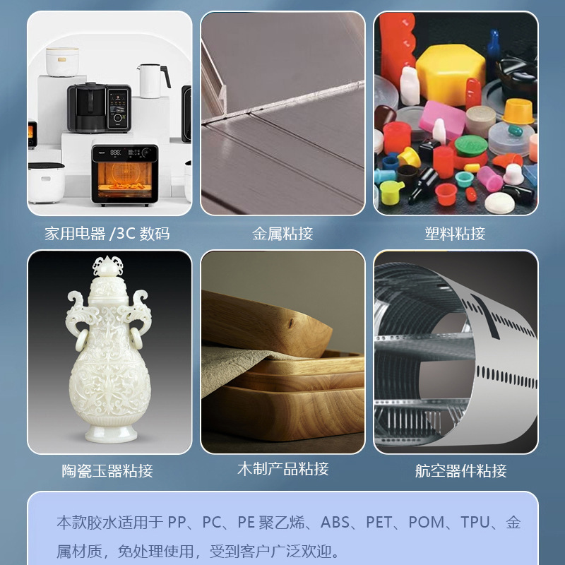 PP 플라스틱 접착제, 무처리, 투명, 무백화, 강력 접착, PC 금속, PE 세라믹, ABS/PET 속건성 접착제