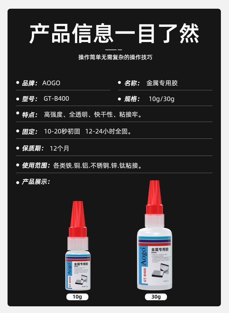 국경 간 금속 접착제 스테인레스 스틸 강한 접착제 철 알루미늄 합금 자석 특수 접착제 고온 방지 빠른 건조 인스턴트