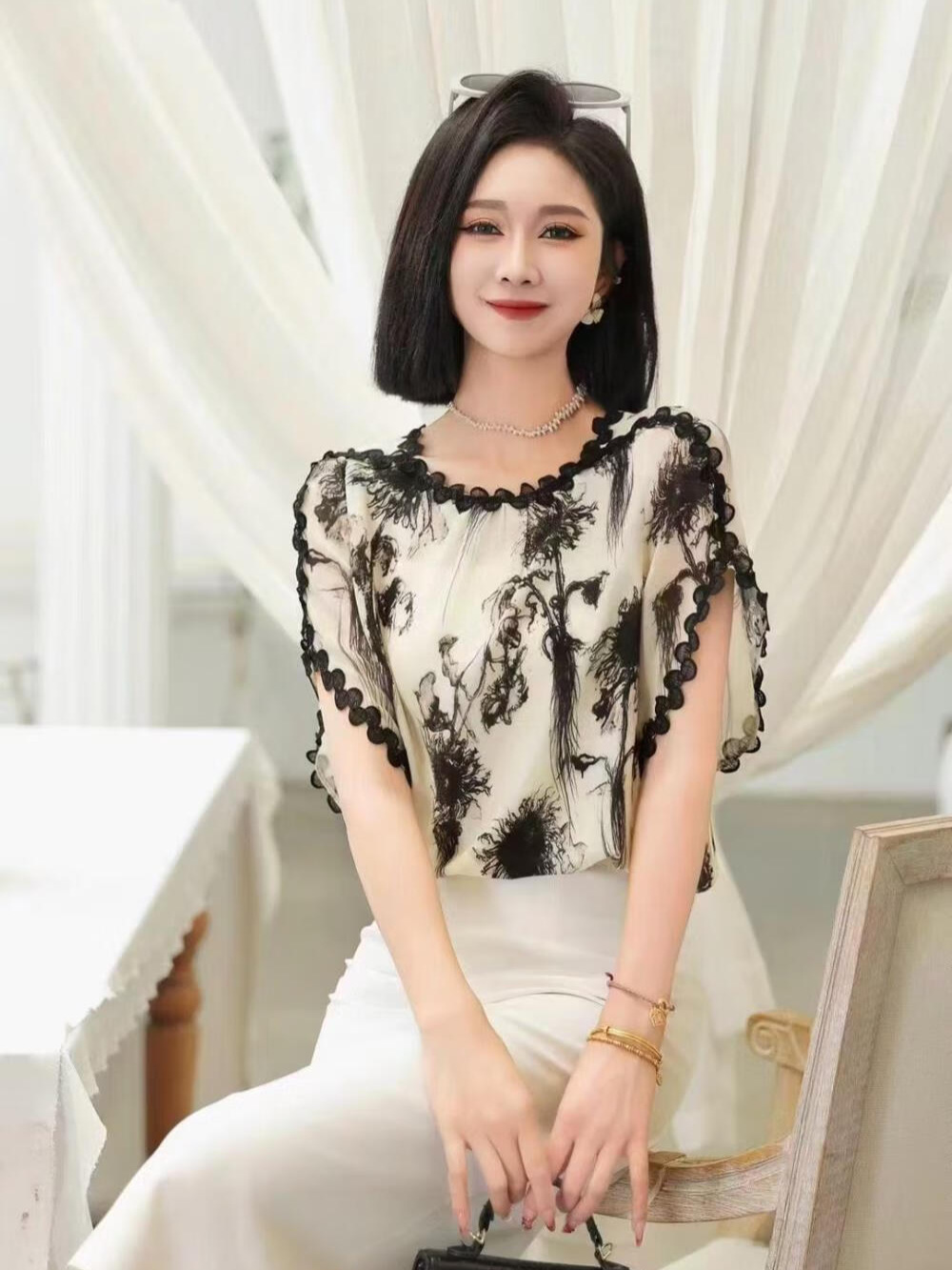 여름옷, 가을 쉬폰 셔츠, 슬리밍 배 셔츠, 디자인 셔츠, 프린트 셔츠 대량 재고 있음