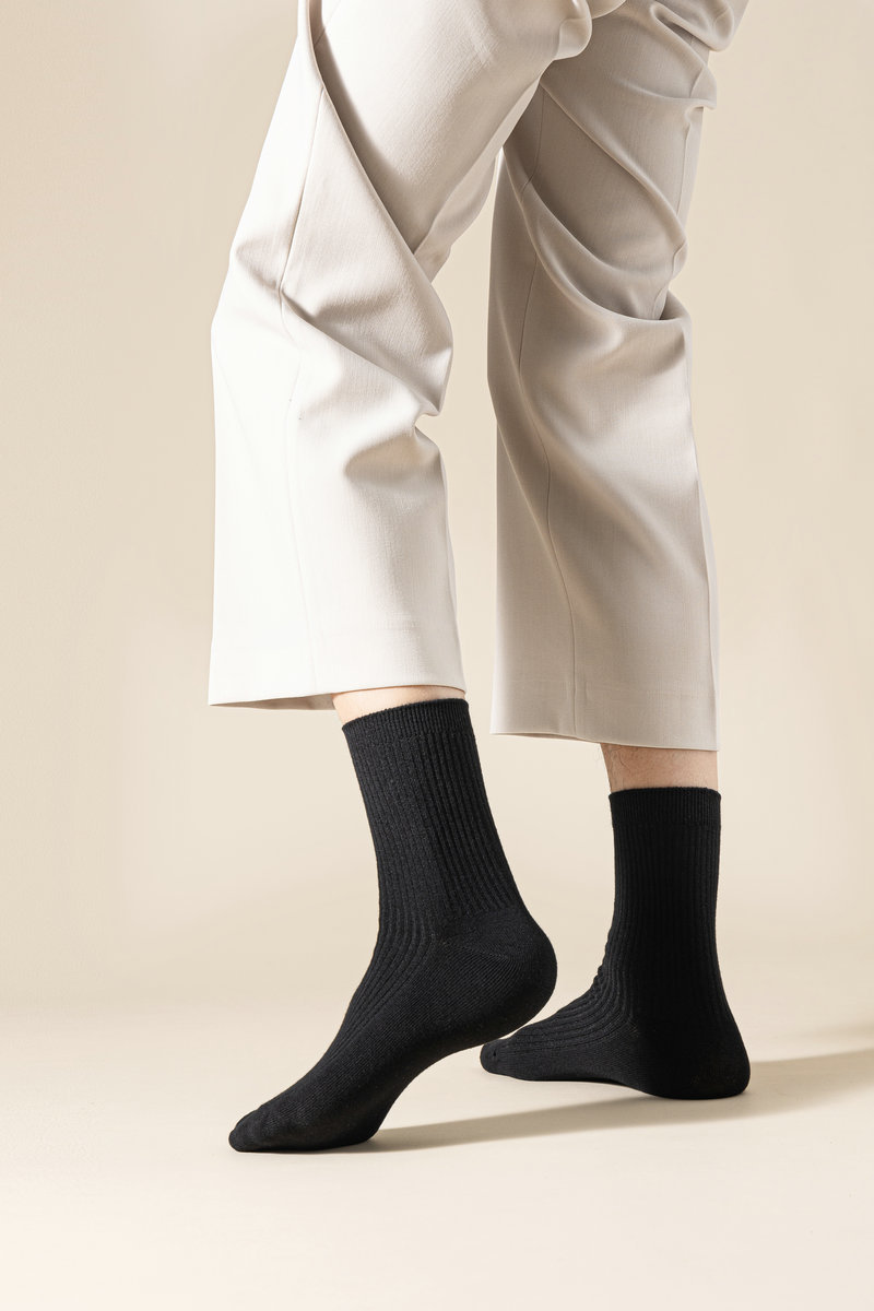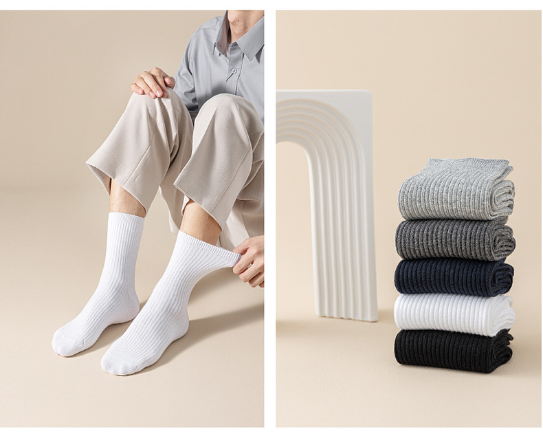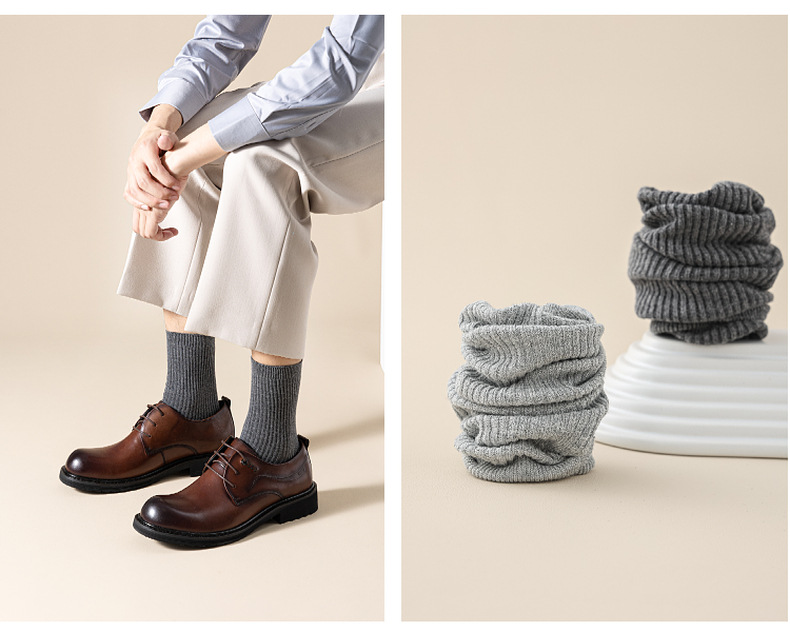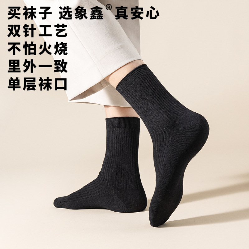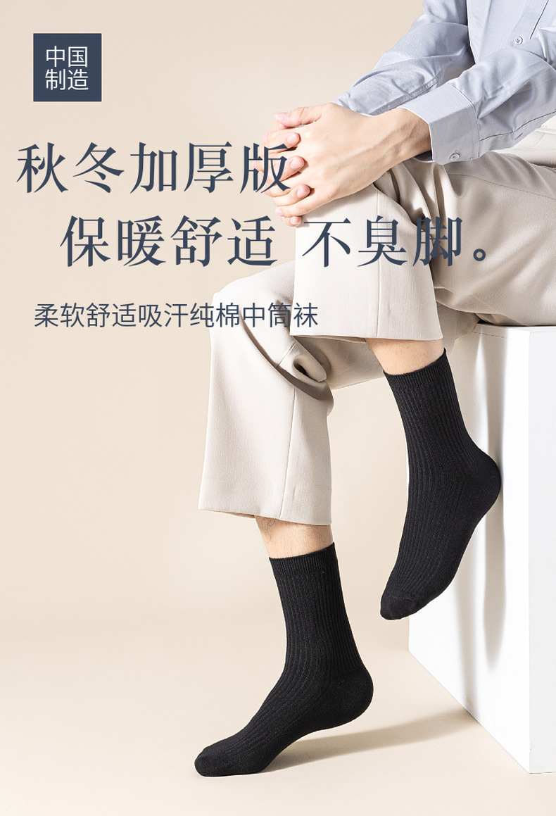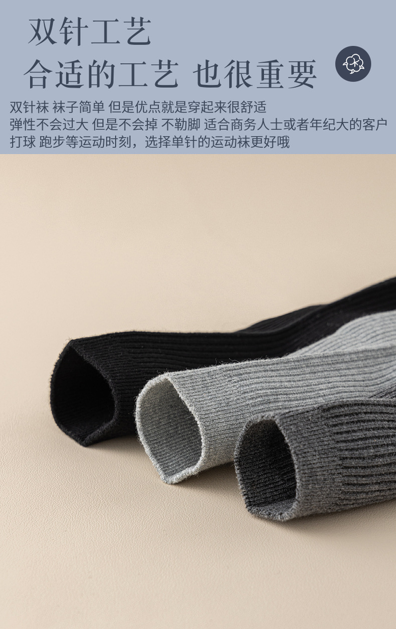 这款是双针男袜,纯棉的材质,厚度属于秋冬款
