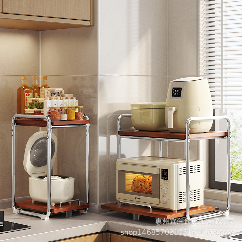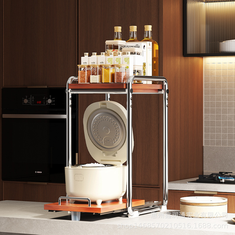 중간 고대 스타일 풀 아웃 전자 레인지 저장 랙 전기 밥솥 주방 카운터 탑 오븐 에어 프라이어 저장 랙 크로스 국경