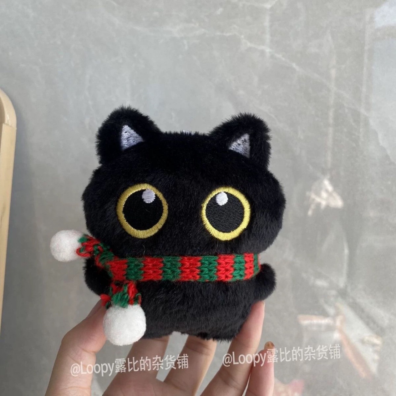 검은 고양이 인형 + 빨간색과 녹색 스카프