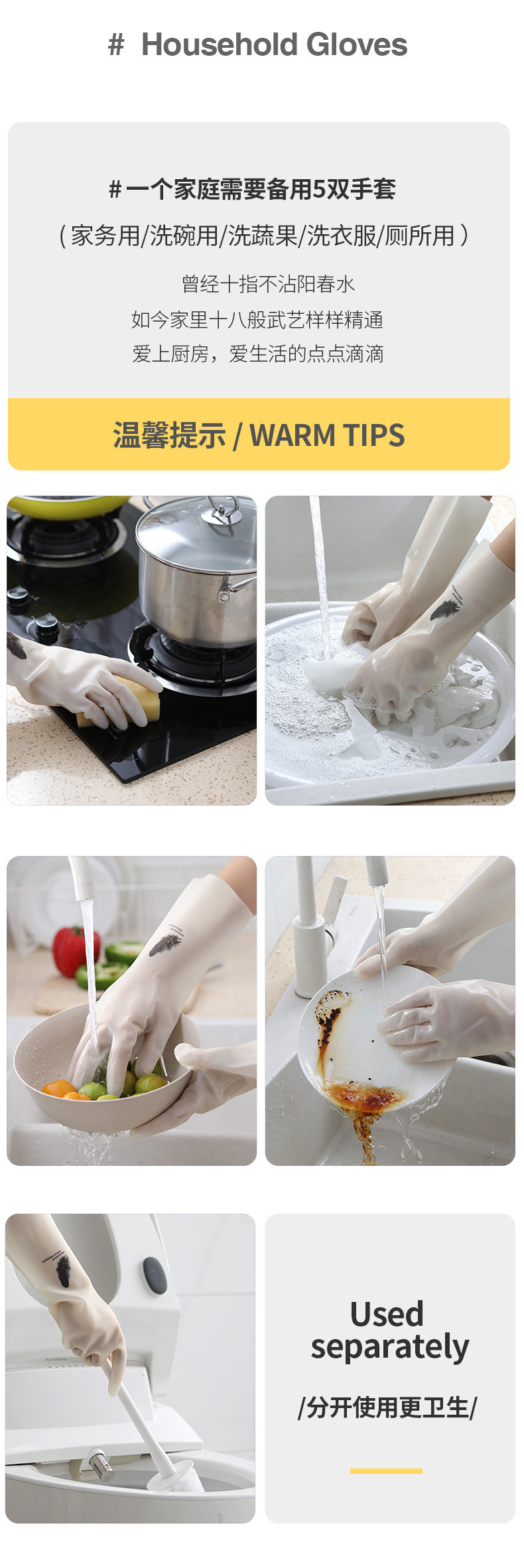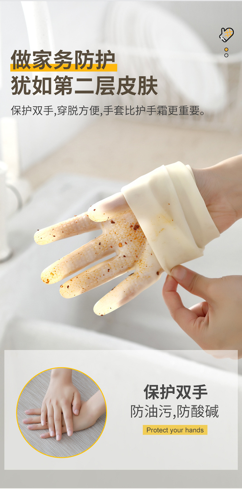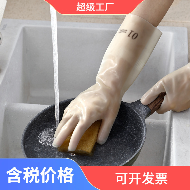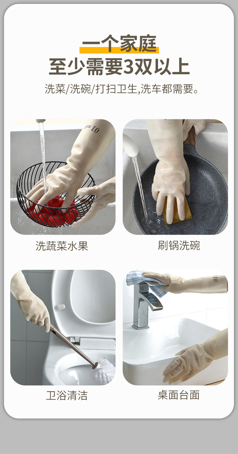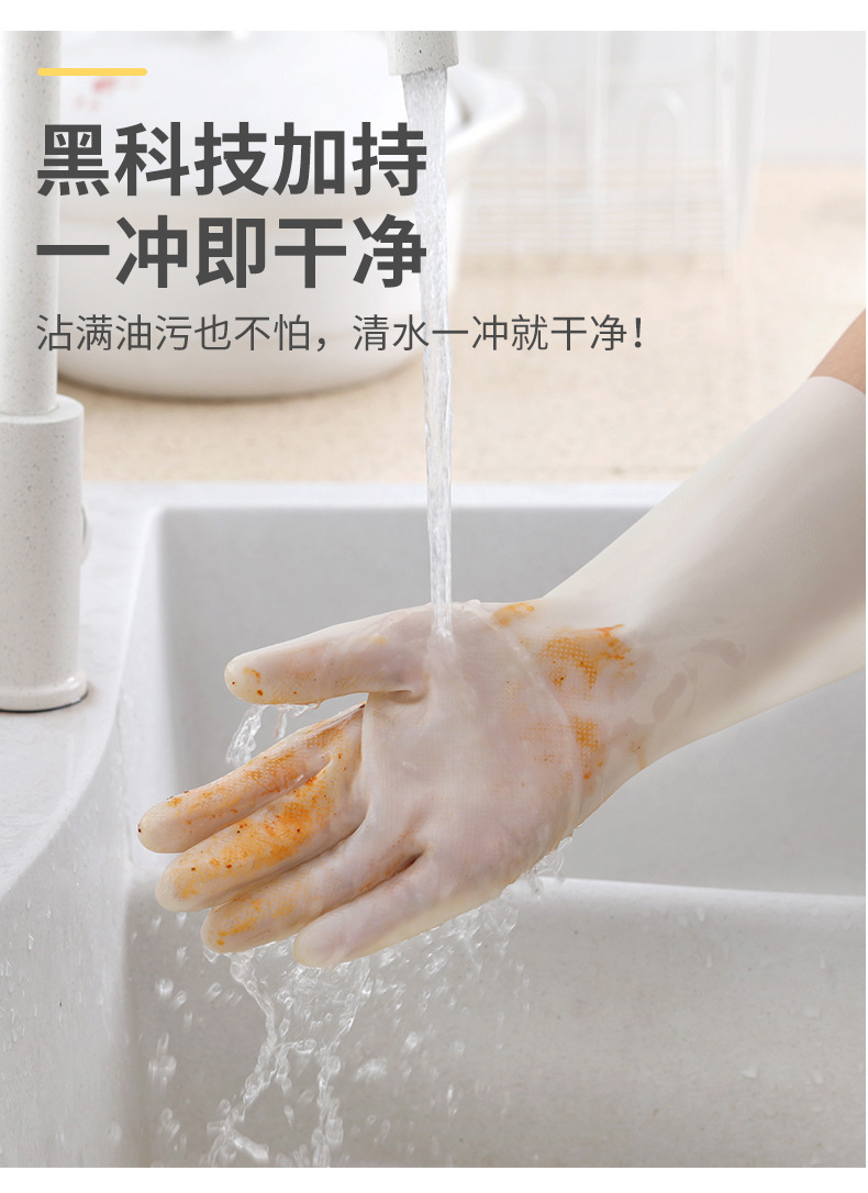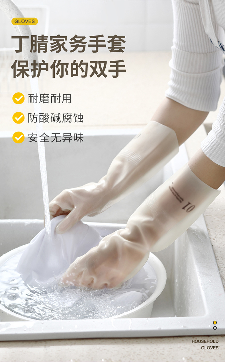줄 지어있는 니트릴 장갑 방수 두꺼운 고무 기모 씻기 요리 식기 소녀 세탁 옷 가정용 장갑
