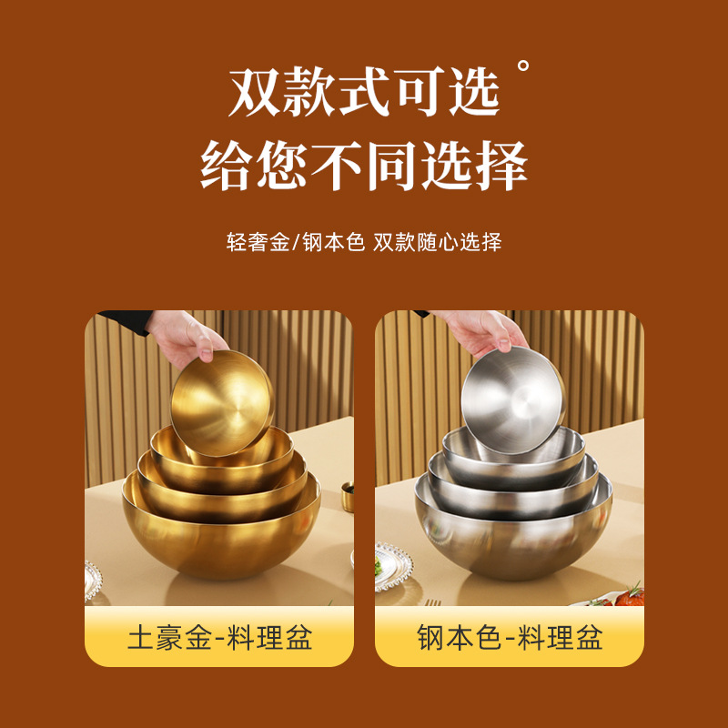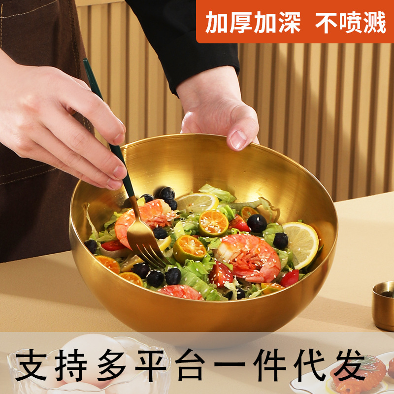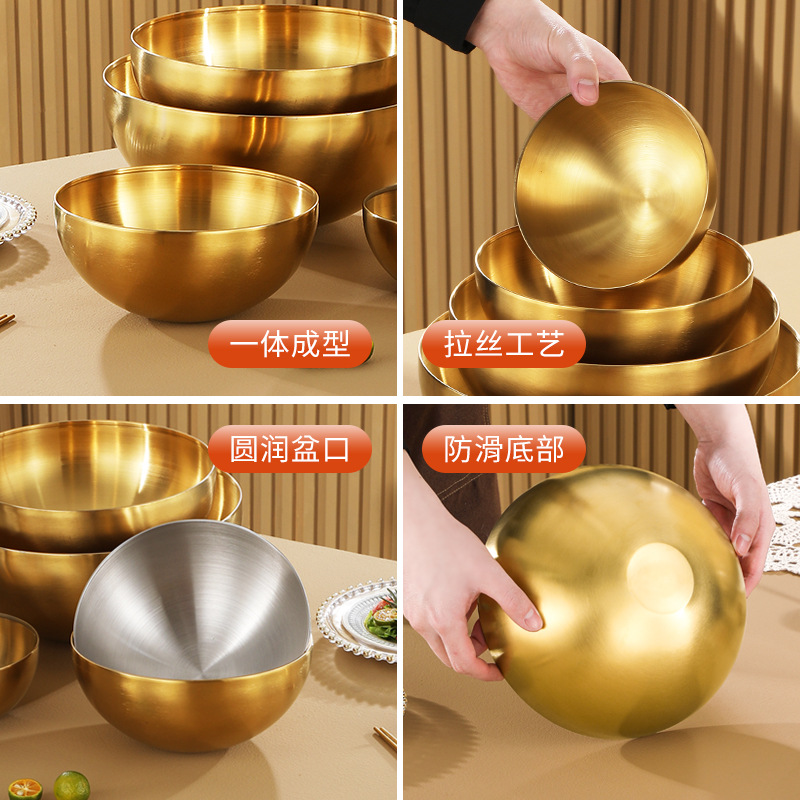 不锈钢冷面碗韩式餐具家用拌饭碗高颜值金色大料理盆水果碗沙拉碗